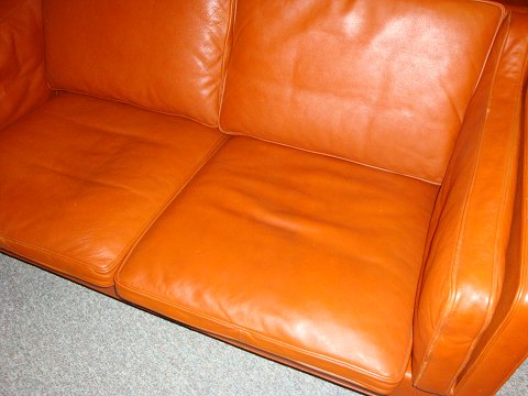 Borge Mogensen two-seater. sofa. Model BM from 2212. Fredericia furniture factory in cognac colored leather in perfect condition 2 pieces held in storage 5000 m2 showroom