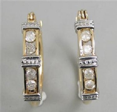 Et par diamant øreringe i 10 kt guld med 8 facetslebne diamanter i alt 0,25 ct.