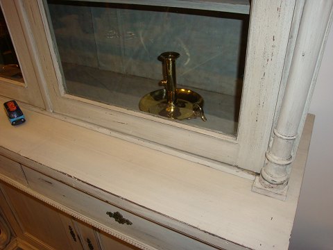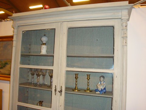 SoldGlasvitrine gray painted Gustavian from the year 1850 in good condition 5000 m2 showroom