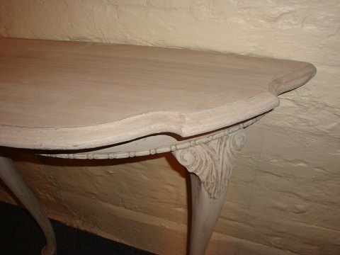 SoldHalf round console table from around the year 1920, painted grey.