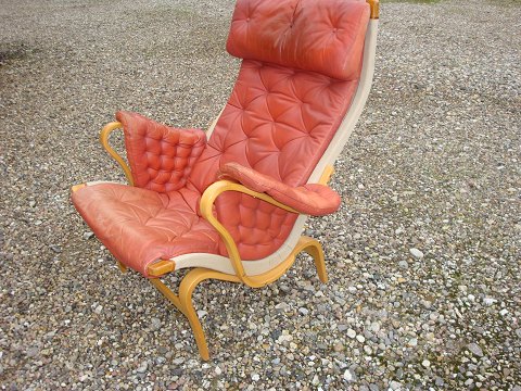 Armchair Pernella / 69 in red leather designed by Bruno Mattson 5000 m2 showroom