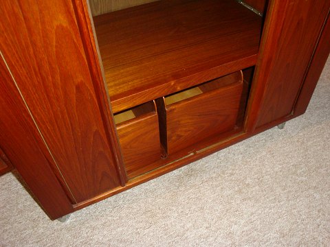 Bar i teaktræ med jalousidøre og udtræksklap dansk design fra 1960érne