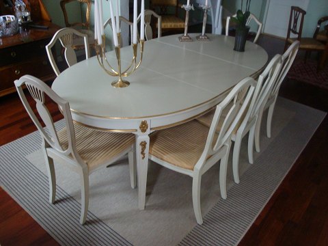 Heppelwhite dining room in white. 5000m2 Showroom.
