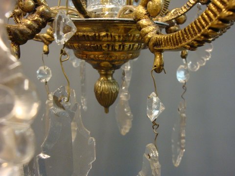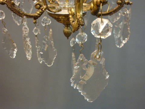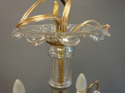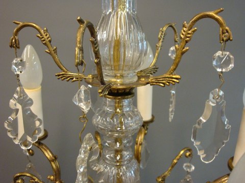 Old crystal chandelier from the around the year 1940 in brass.