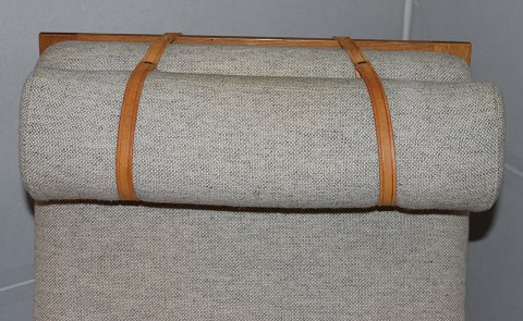 SoldLounge chair with stool designed by Borge Mogensen model 2254 sled chair tall model in light wool with loose cushions. Oak frame is in good condition. Dimensions, High 96 cm, W 66 cm, D 96th Seat height 36 cm