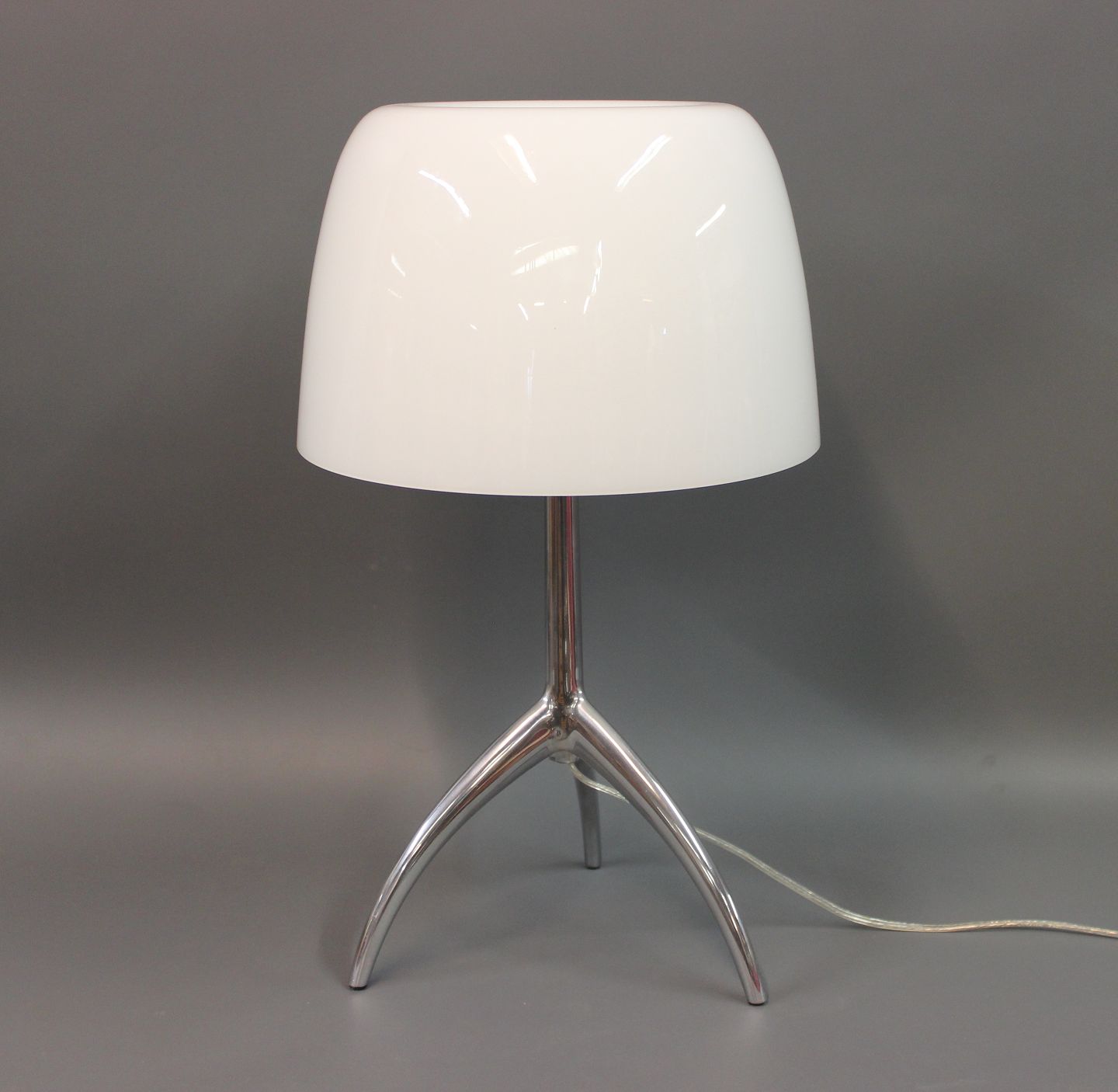 SoldFoscarini -Lumiere Grande table lamp with white shade and aluminum frame. H. 45 cm , W: 26 cm.
