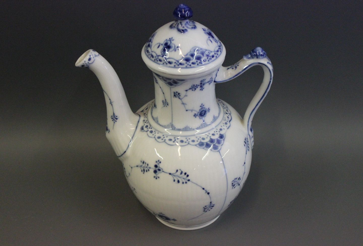 Royal Copenhagen blue fluted half lace coffeepot/vase no. 519. The coffeepot was made between 1889-1922.