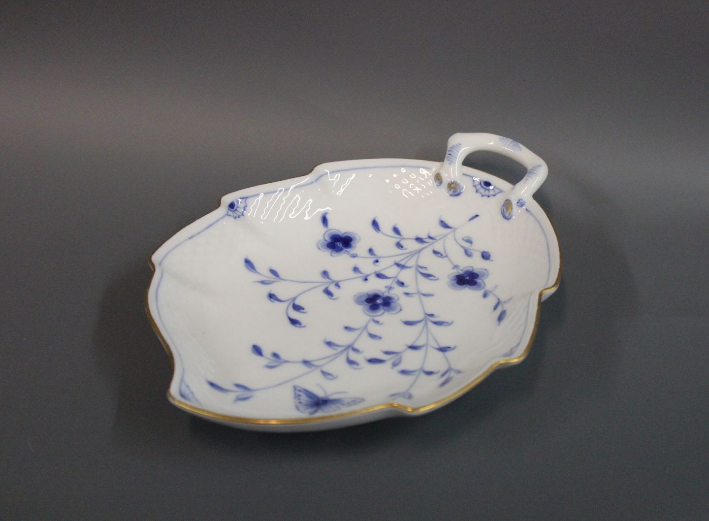 SoldB & G porcelain butterfly. Leaf shaped dish with gilt edge. No. 32 and made between 1915 and 1947.