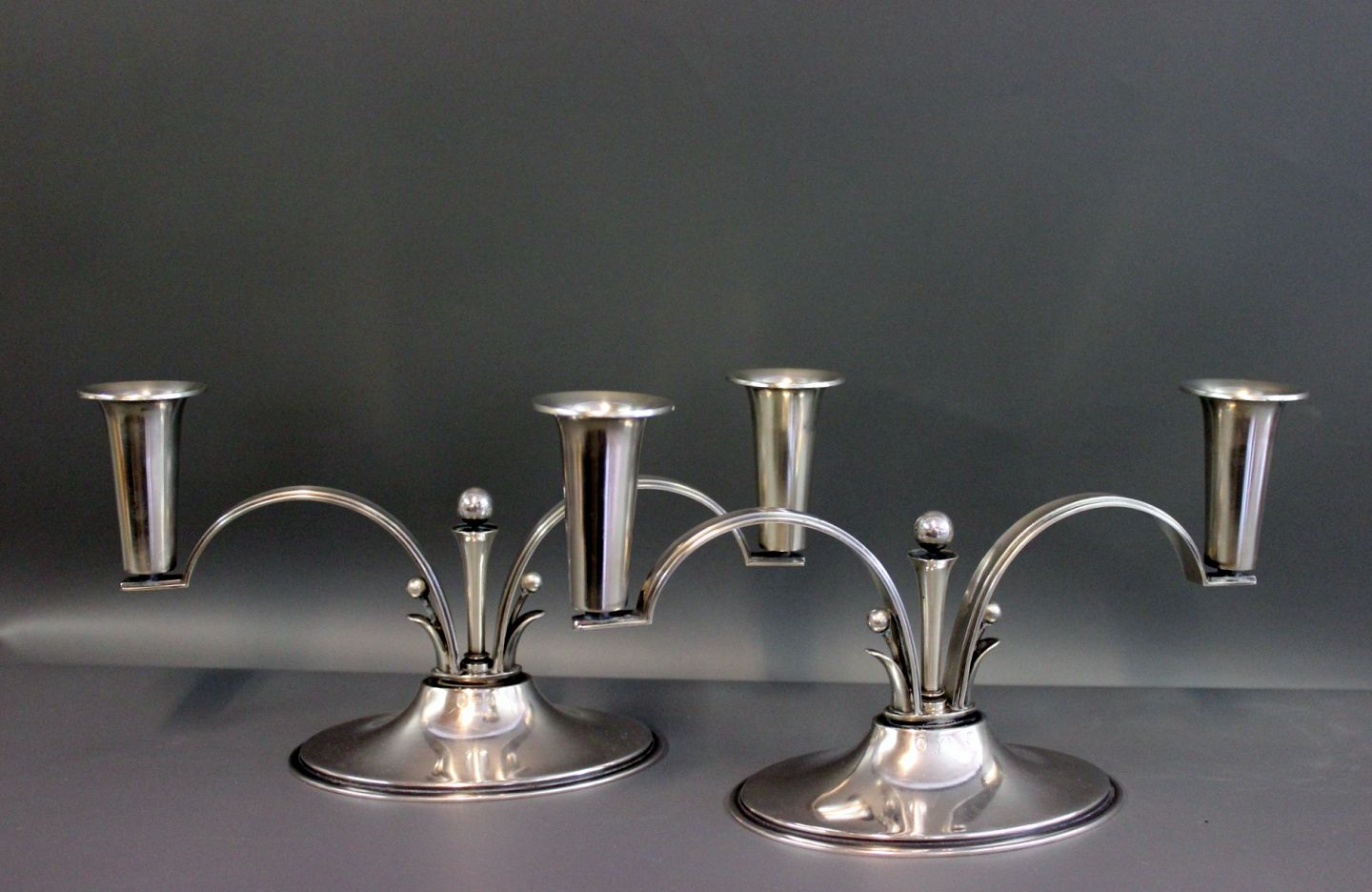 SoldA pair of two-armed silver candlesticks in hallmarked silver from 1938.