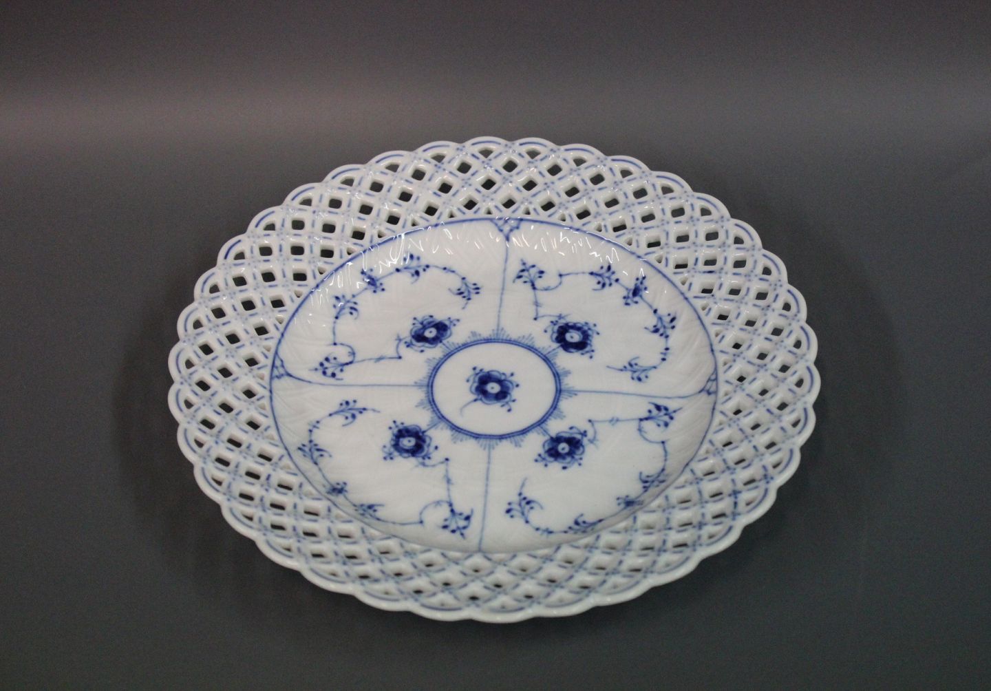 Royal Copenhagen blue fluted lace plate with cutaway ornamental edging.