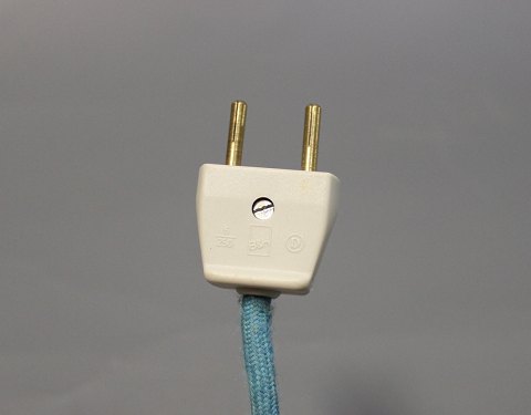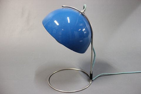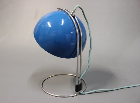 Solgt"Flowerpot" bord lampe, model VP4, designet af Verner Panton i 1968. Lampen er med en blå lakeret skærm.