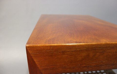 A pair of sidetables designed by Severin Hansen for Haslev Furniture Factory in the 1960s. The tables are in mahogany and cane beneath.