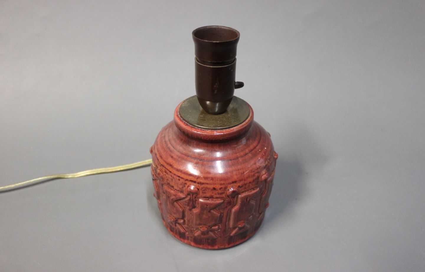 Small Royal Copenhagen tablelamp in dark red ceramic, no. 21485. New lampshade can be purchased for 300 DKK.