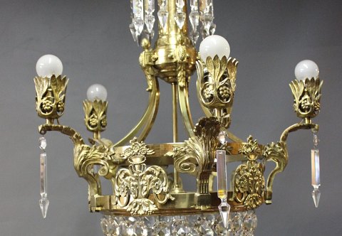 SoldCrystal Chandelier, Five-armed with patinated brass .from around 1910