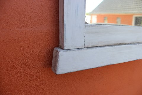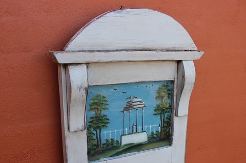 SolgtLille gråmalet spejl i gustaviansk stil fra 1810. Spejlet er udsmykket med et lille maleri i toppen.