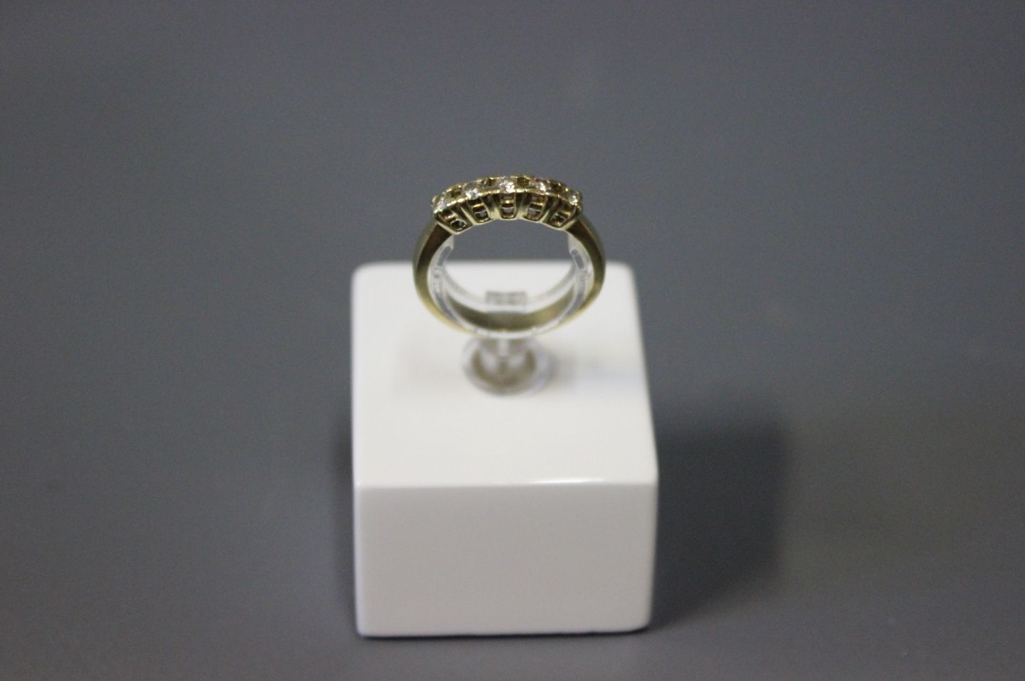 Alliance goldring in 14 carat with 5 cut diamonds, ingraved F.M.