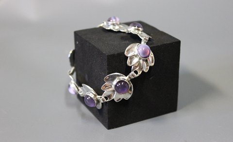 Armbånd, Øreringe samt broche i sterling sølv med lilla sten fra Brd. B.