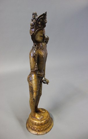 Indisk figur i patineret forgyldt metal, signeret, AS4R330.
