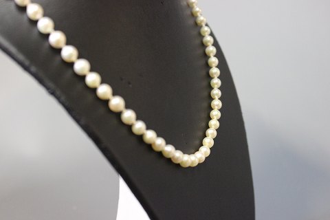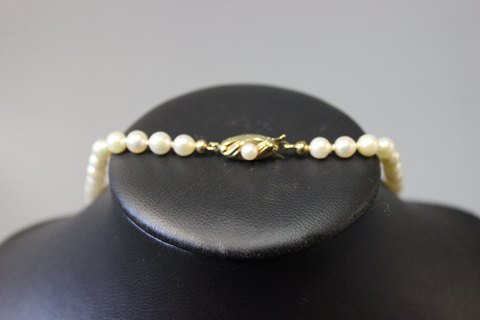 Kulturperlekæde med 14 kt. lås. Kæden er 46 cm lang.
