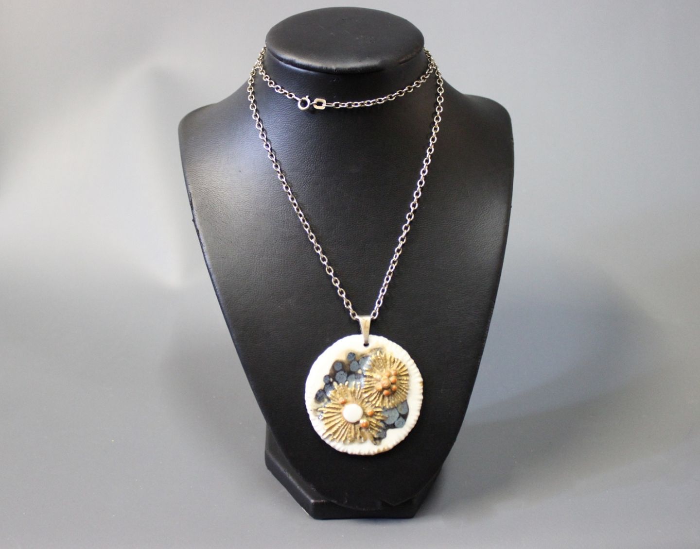 The chain is 64 cm long and the pendant 5,5 cm in diameter.