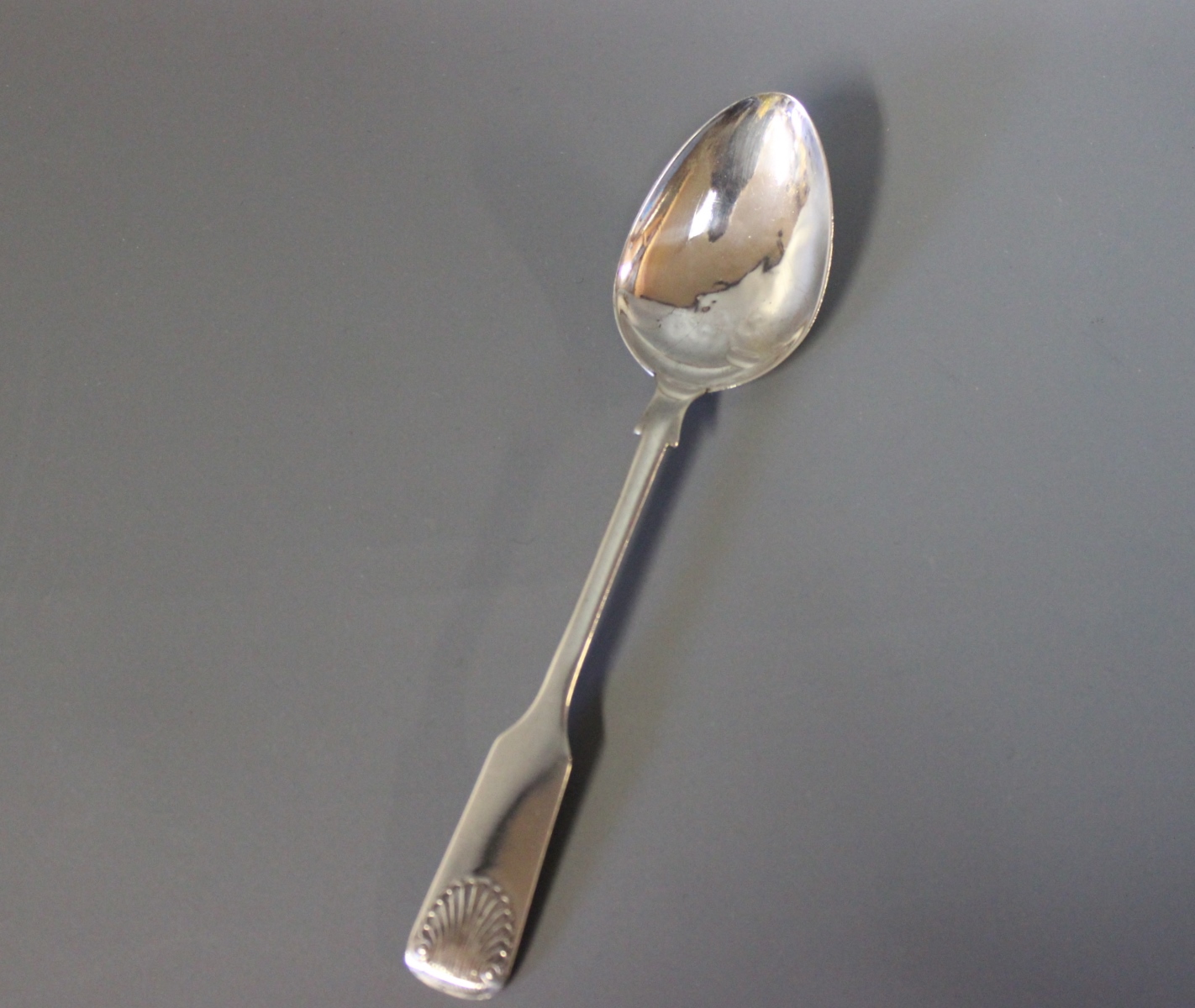 Dinner spoon in "Shell"/Musling", tretårnet sølv.