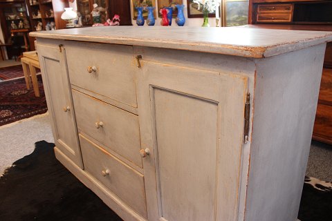 SoldGrocer's disk in grey painted pine Wood from the 1930s. The disk is in good condition and with fillings in the back.