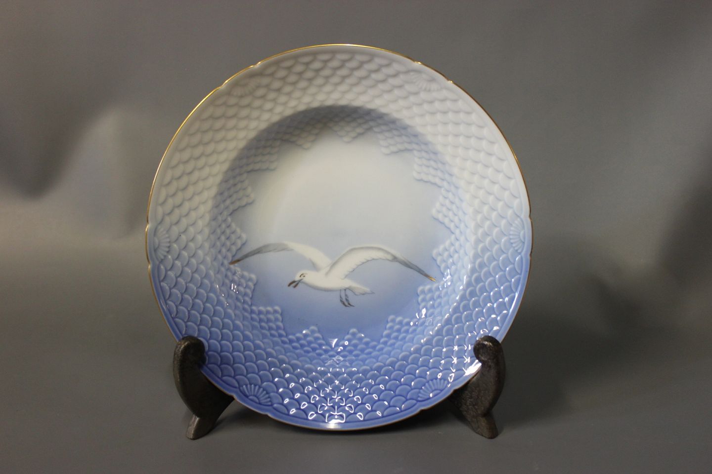 Deep lunch plate with gilded edge, Sea Gull by B&G.