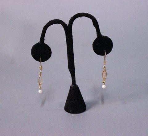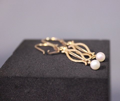 SoldEarrings in 14 ct. gold with small cultured Pearls.