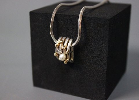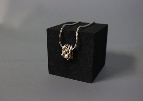 Necklace in 925 sterling silver with pendant decorated with 14 ct. gold.
