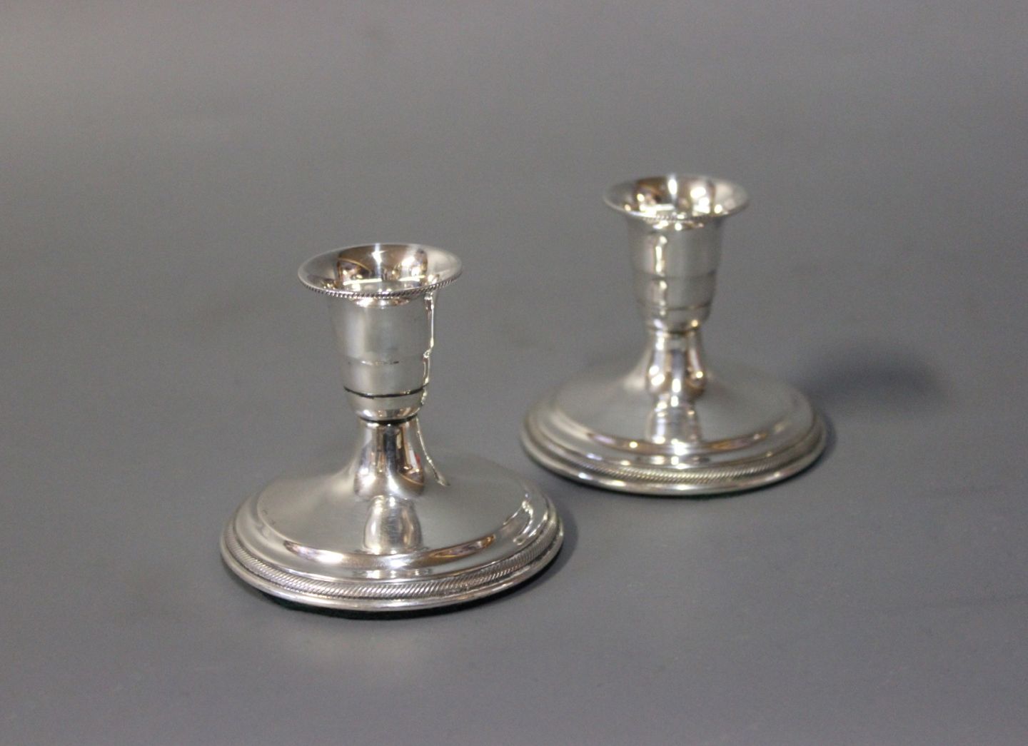 Et sæt lave lysestager i 830 sølv med filt i bunden.