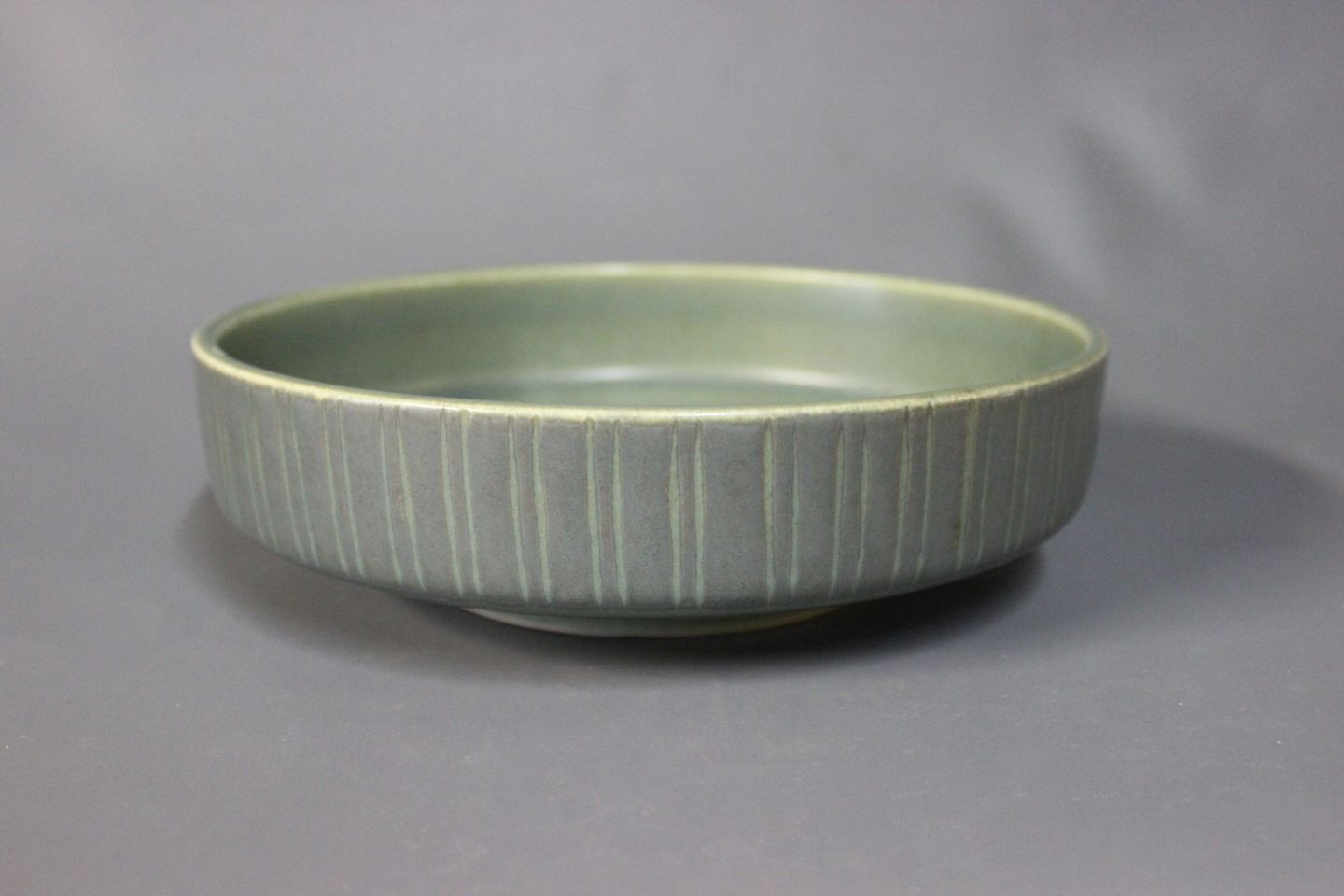 Large low bowl in green colors by Søholm Denmark.