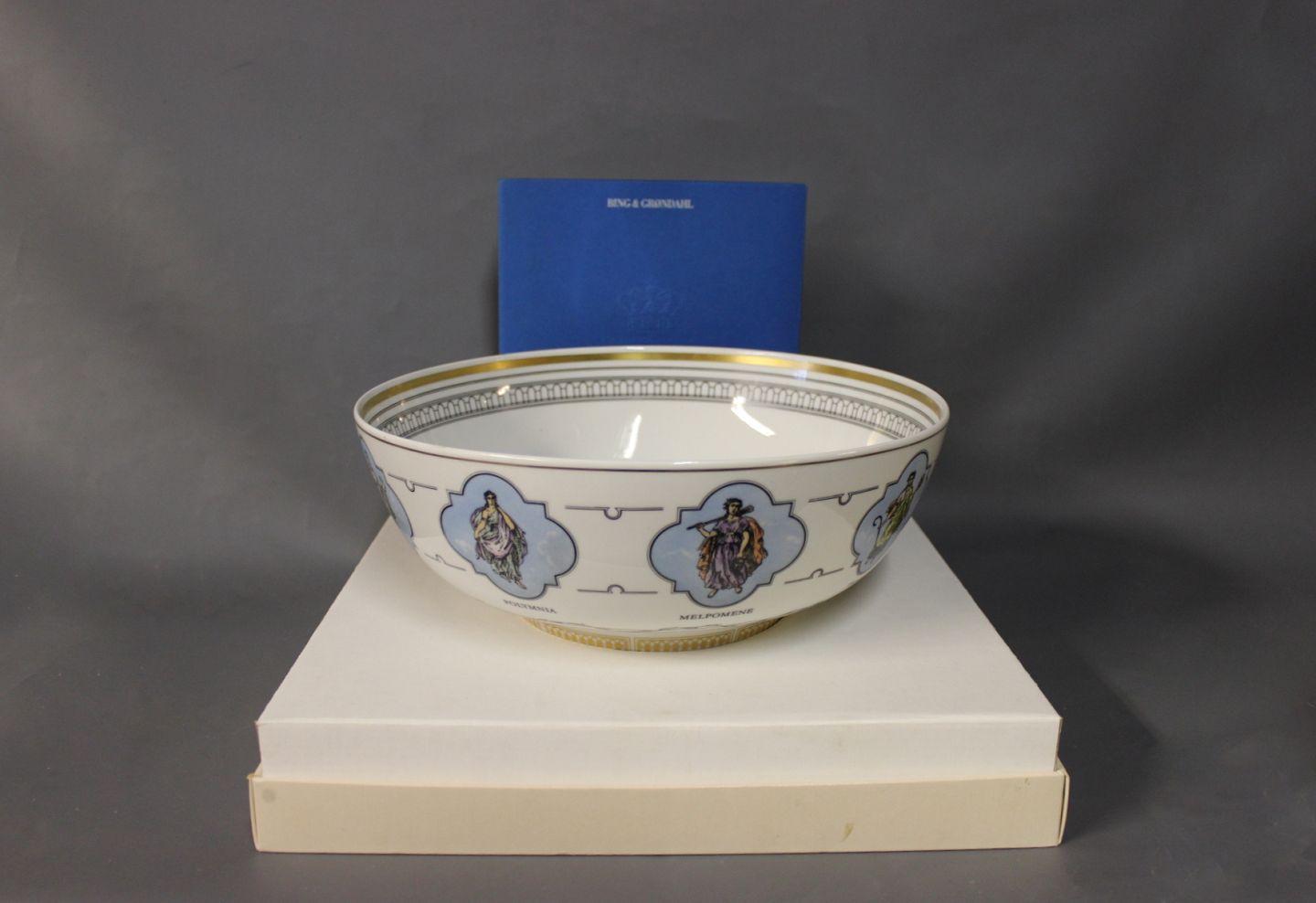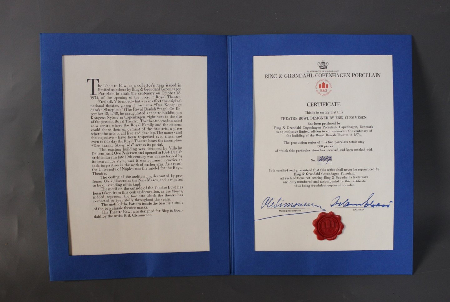 SoldB&G Theater bowl in the occasion of the opening of the The Royal Theater at "Kongens Nytov" the 15th of Oct. 1874. The bowl has been made in 500 pieces, this one is no. 247. Composition by Erik Clemmesen.