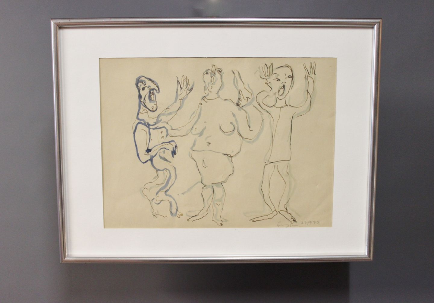 Simpel tegning af tre skikkelser med ukendt signatur fra 2/7-1972.