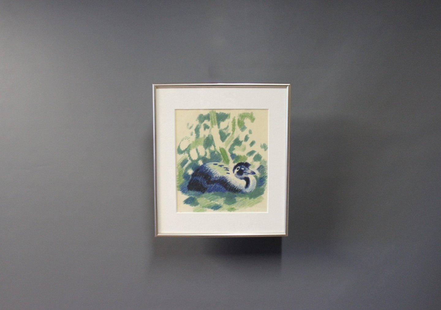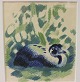 Litografisk tryk i flotte farver af en påfugl, ingen signatur.