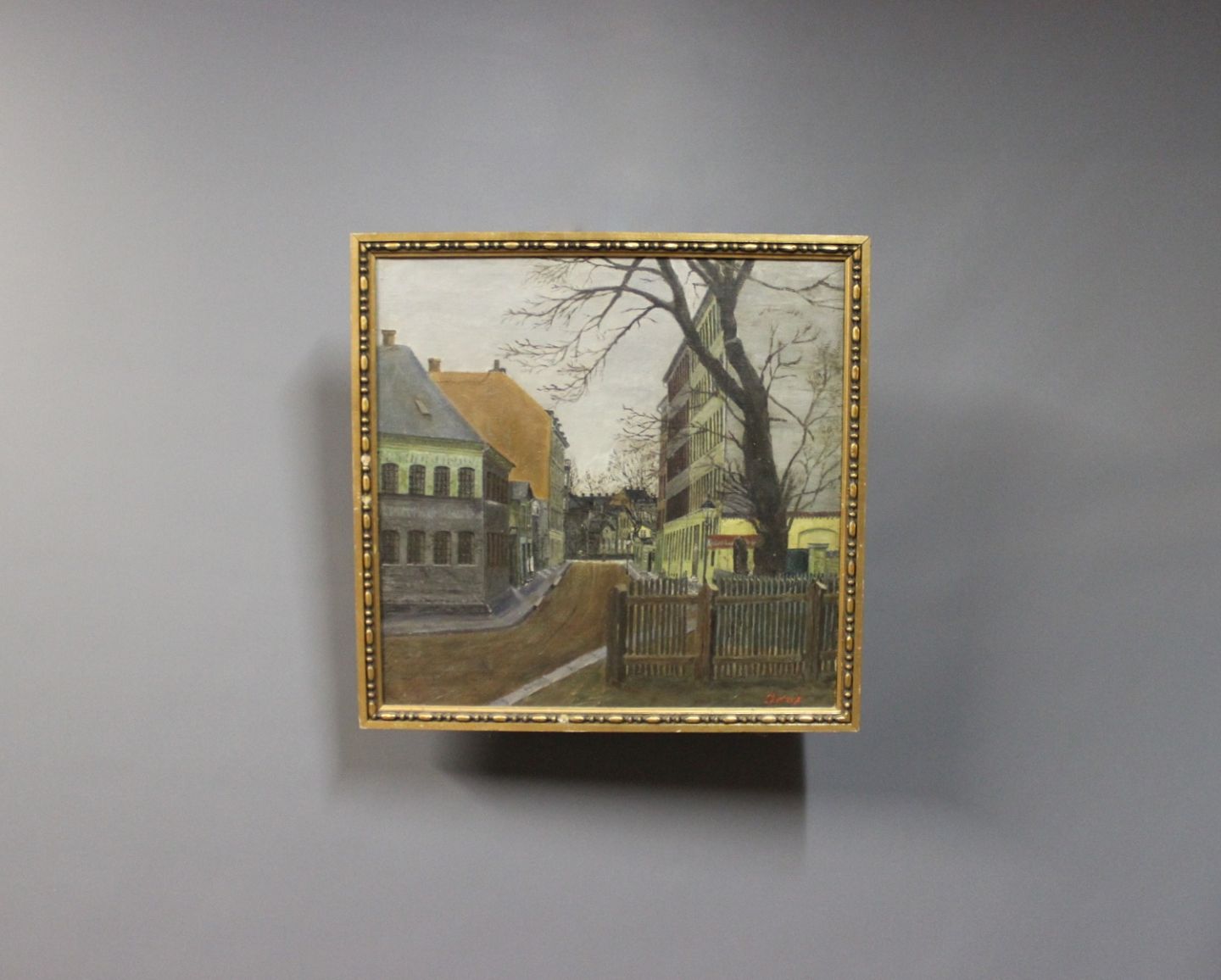 SolgtMaleri på lærred i mørke farver signeret Jøns.