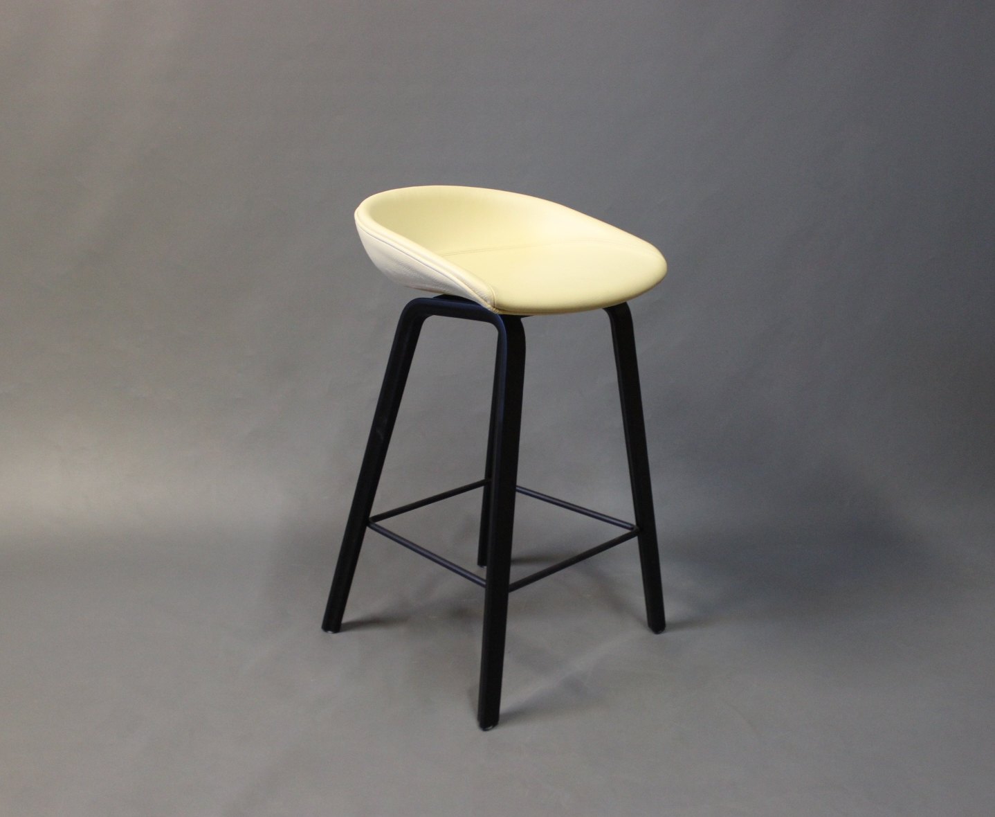 SoldA pair of barstools "About a Stool" ASS32 designed by HAY in 2010. These are newly upholstered with Classic yellow leather and legs of Black polished Wood. We have 1 left.