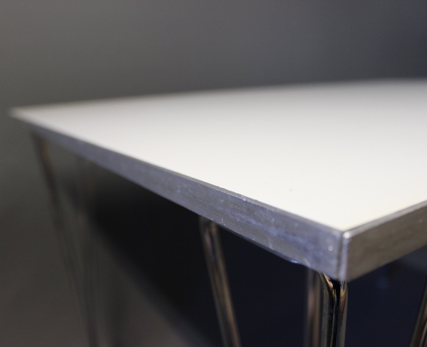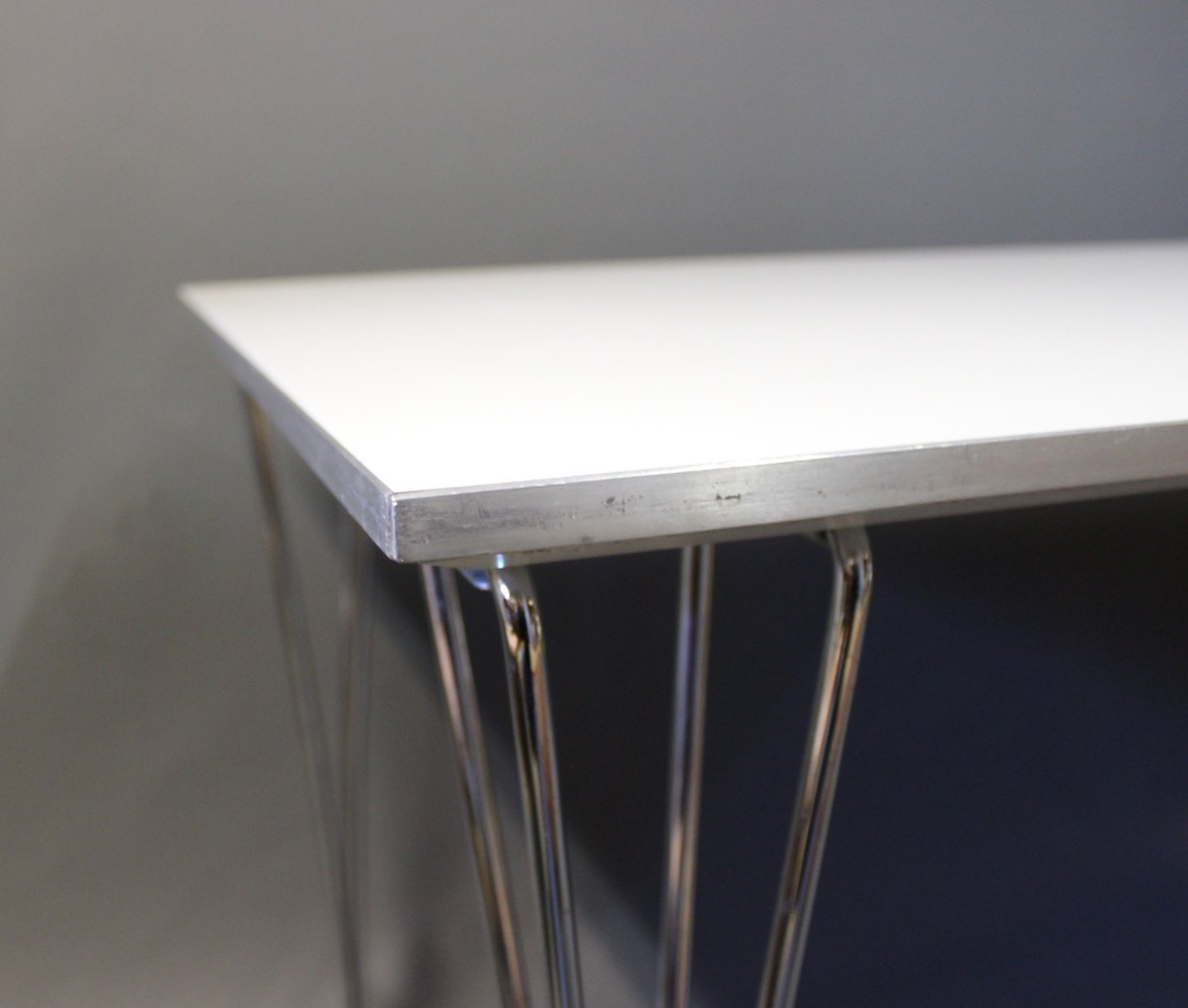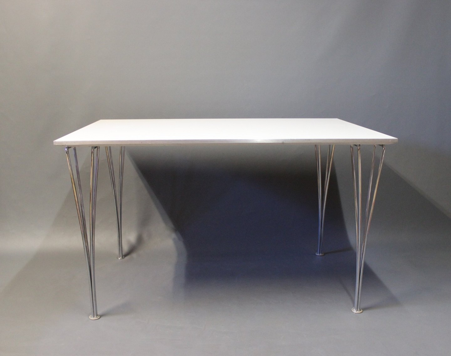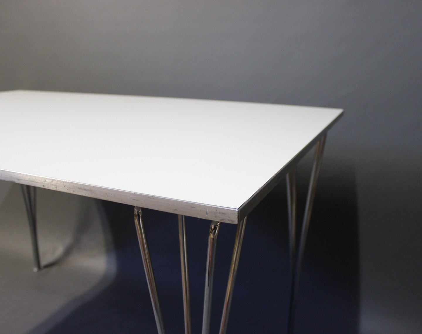 Rektangulært spisebord designet af Piet Hein, Arne Jacobsen og Bruno Mathsson i 1960erne og fremstillet af Fritz Hansen i 1994. Bordet er med plade af hvidt laminat med kant af aluminium, monteret med spændben i forkromet stål.