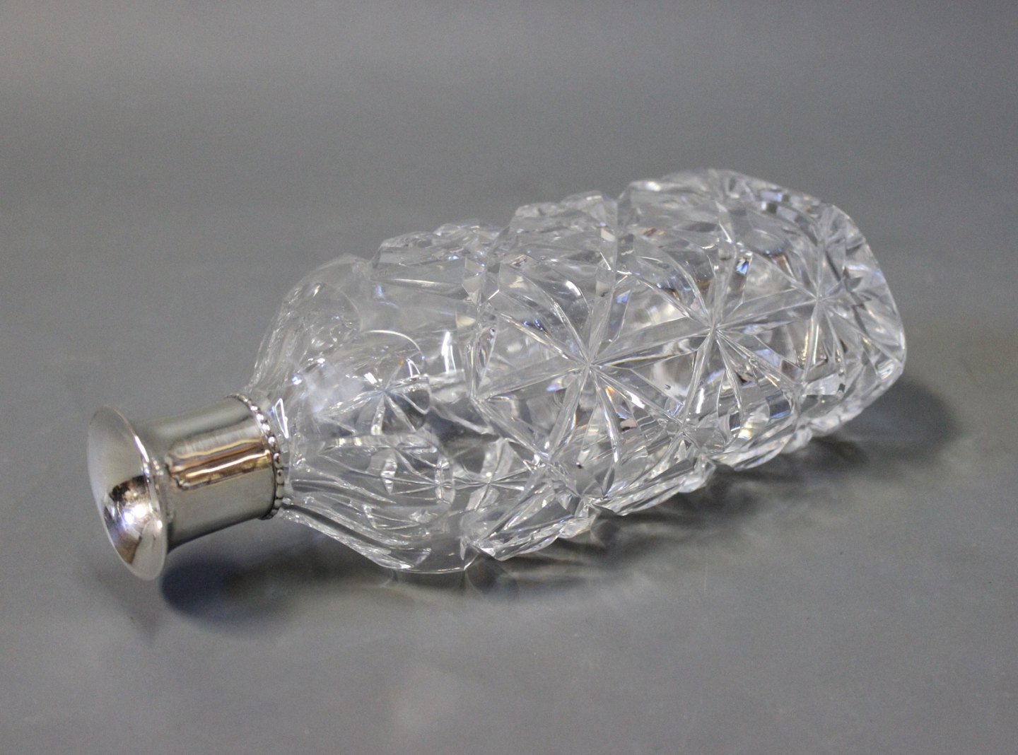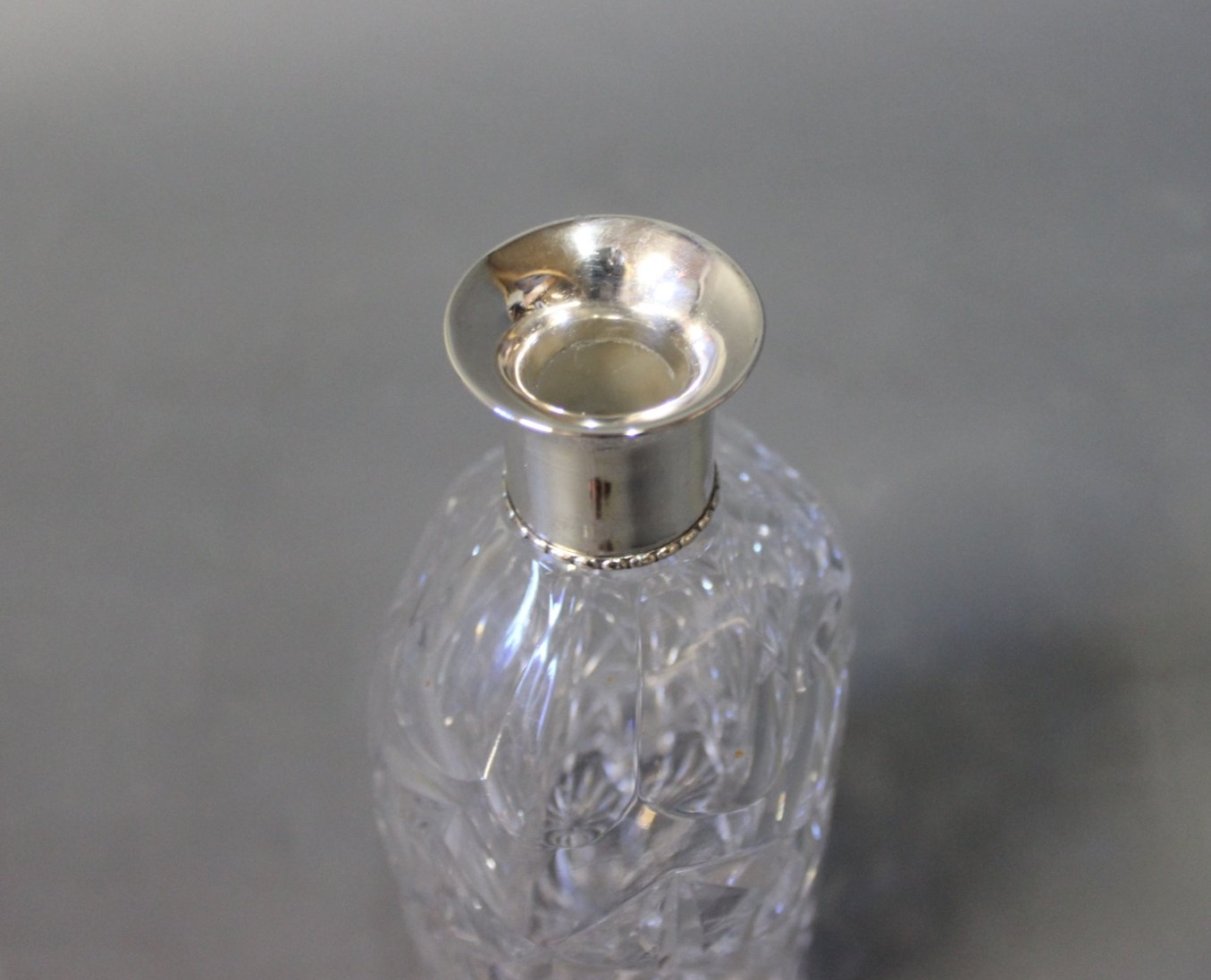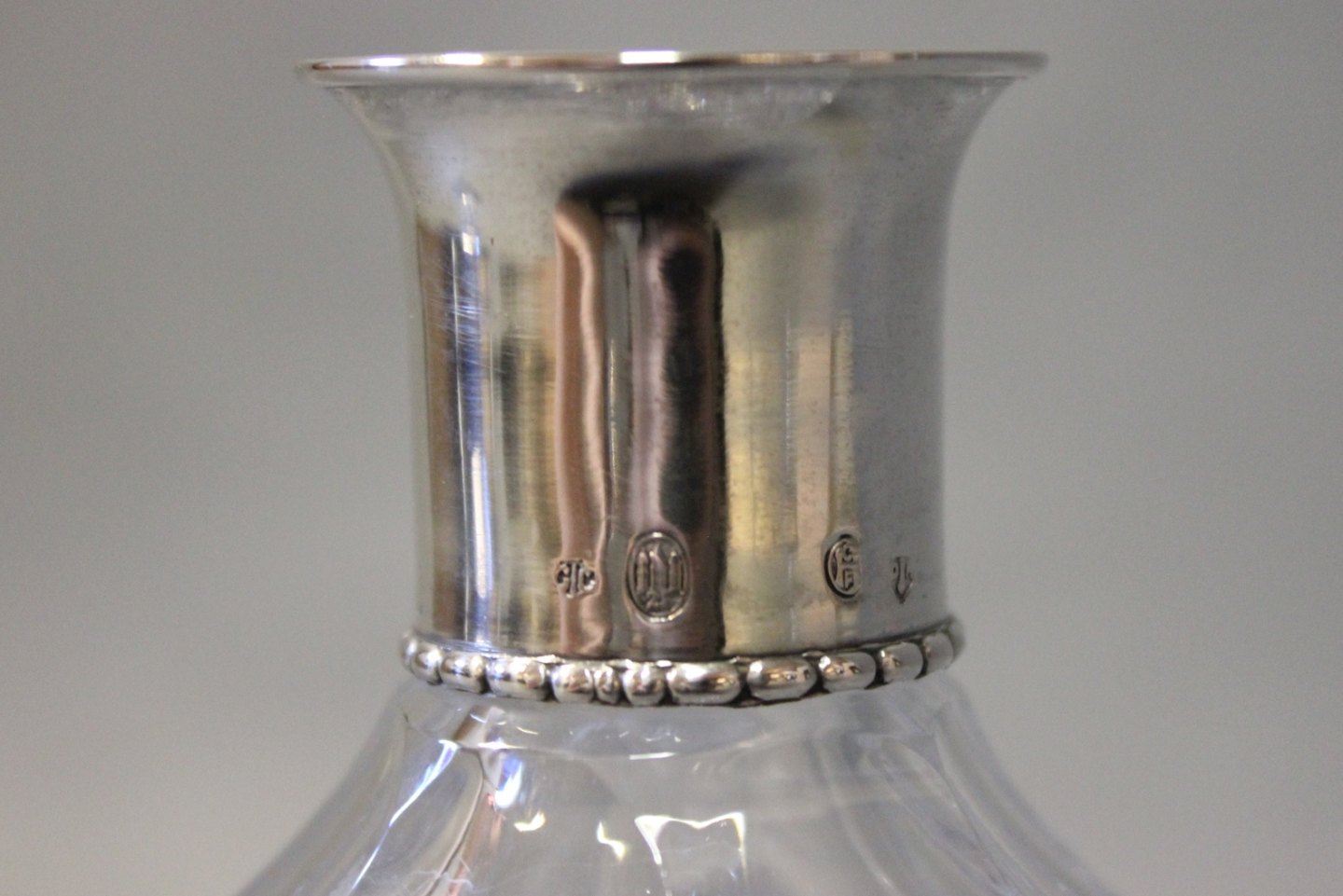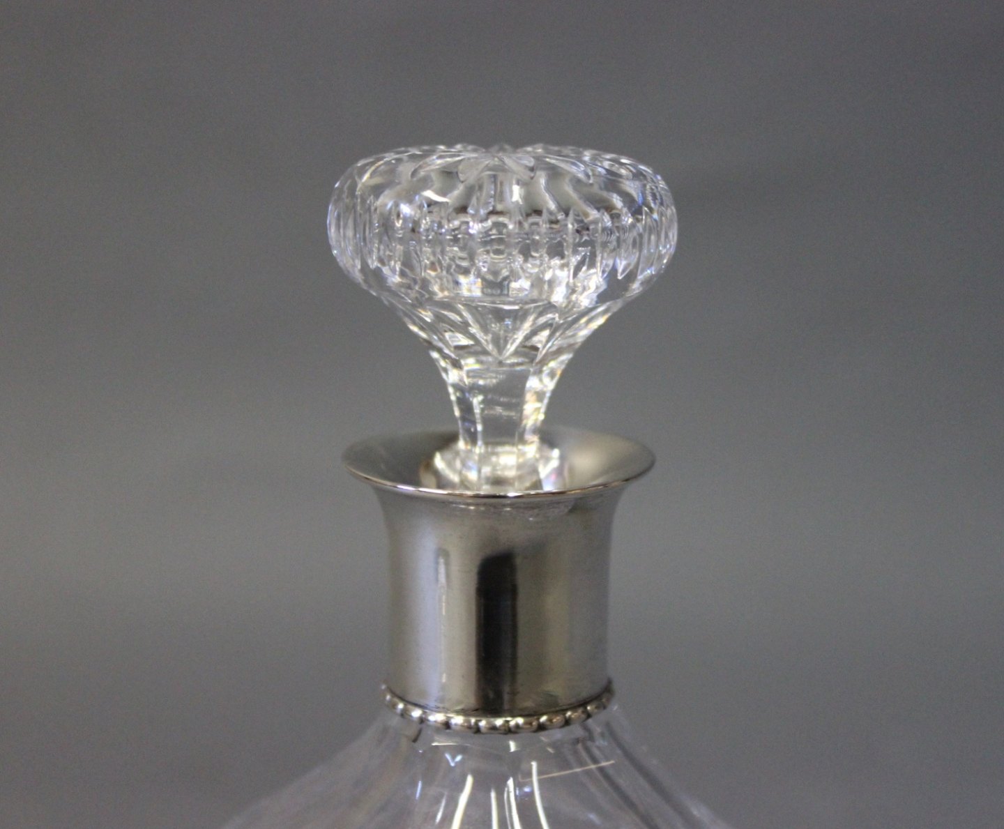 Decanter of crystal with edge of hallmarked silver from the 1930s.