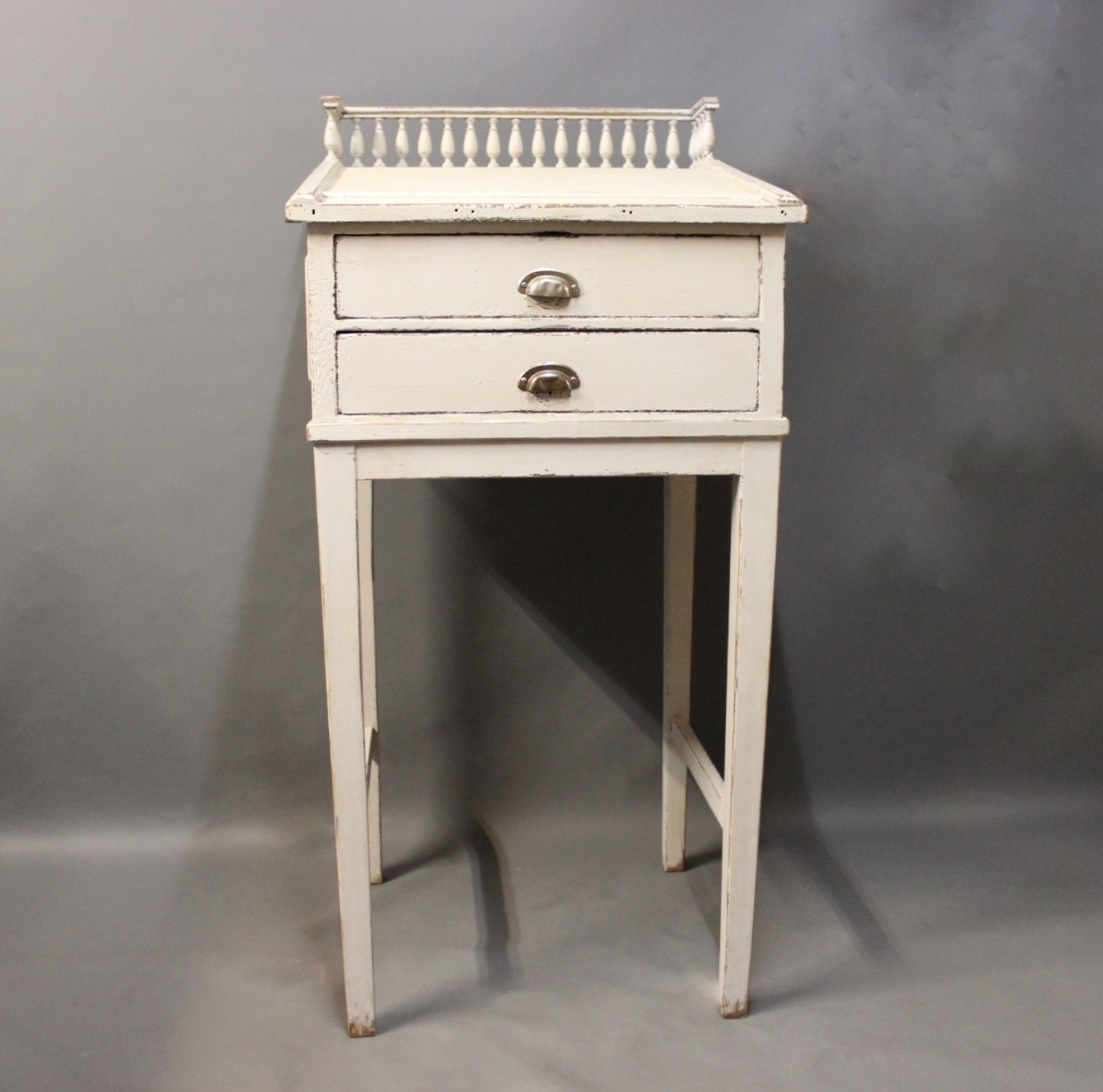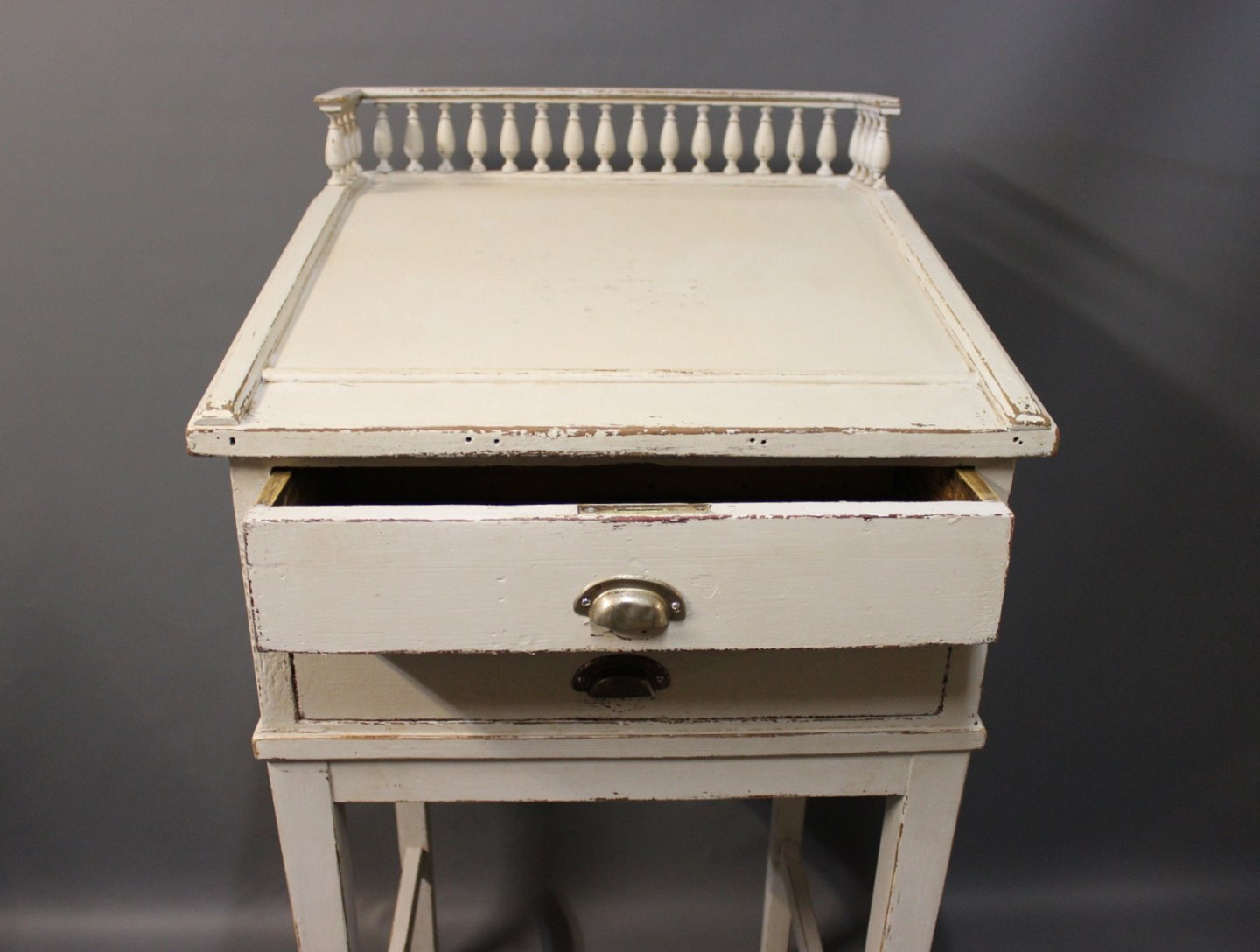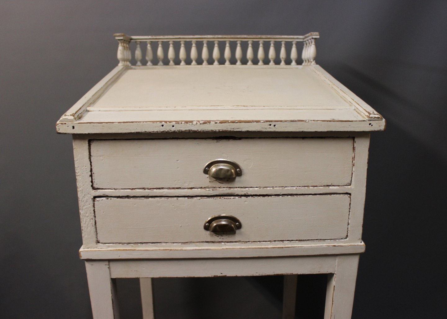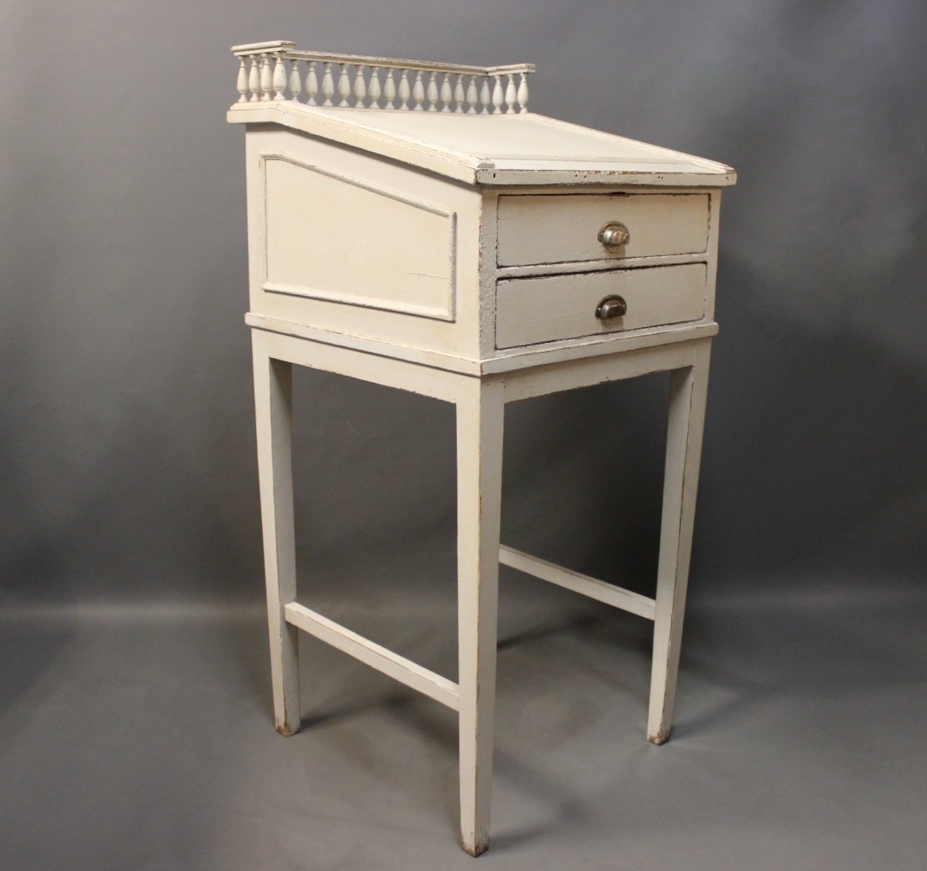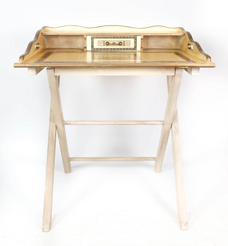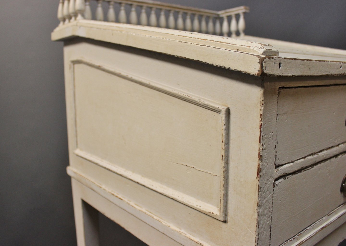 Grey painted writing desk in the style Gustavian from the 1840s. The desk is freestanding and stamped with "Nordisk Films Kompagni".