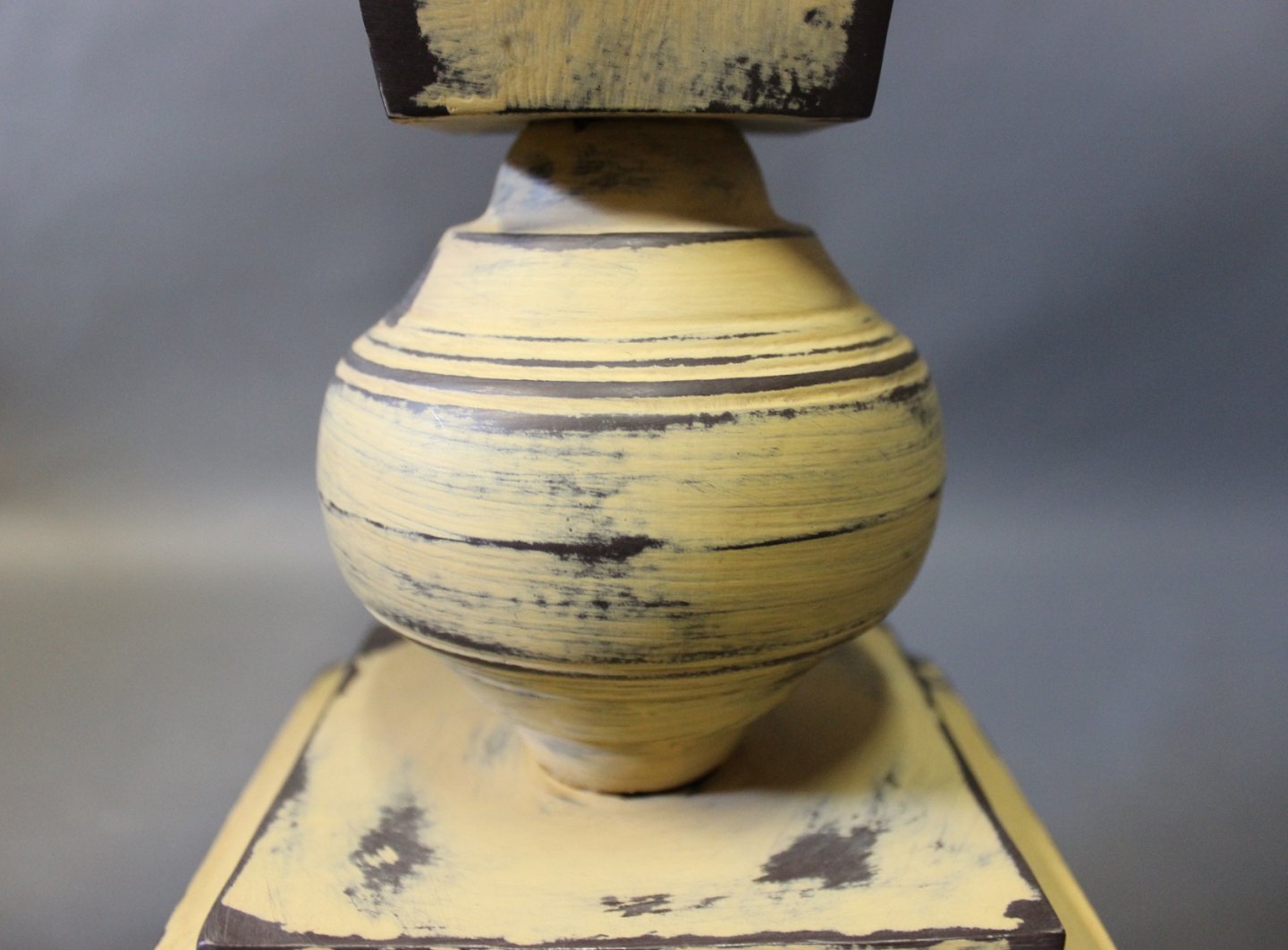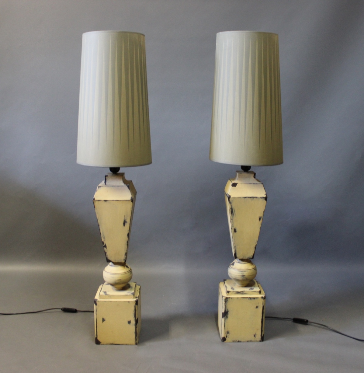 Høje bordlamper af bemalet metal samt grå skærme. Lamperne er fra omkring 1960erne.