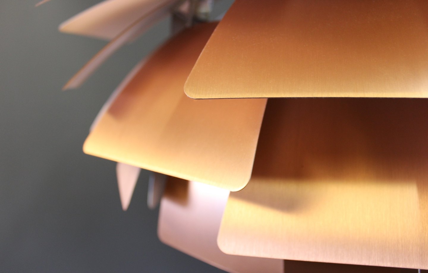 Artichoke, 60, in copper designed by Poul Henningsen in 1958 and manufactured by Louis Poulsen in the 1980s.