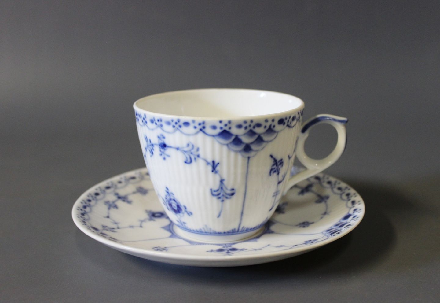 SoldRoyal Copenhagen blue fluted half lace coffee cup and saucer, no.: 1/626.