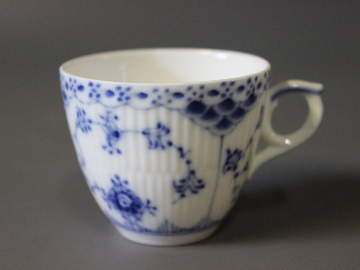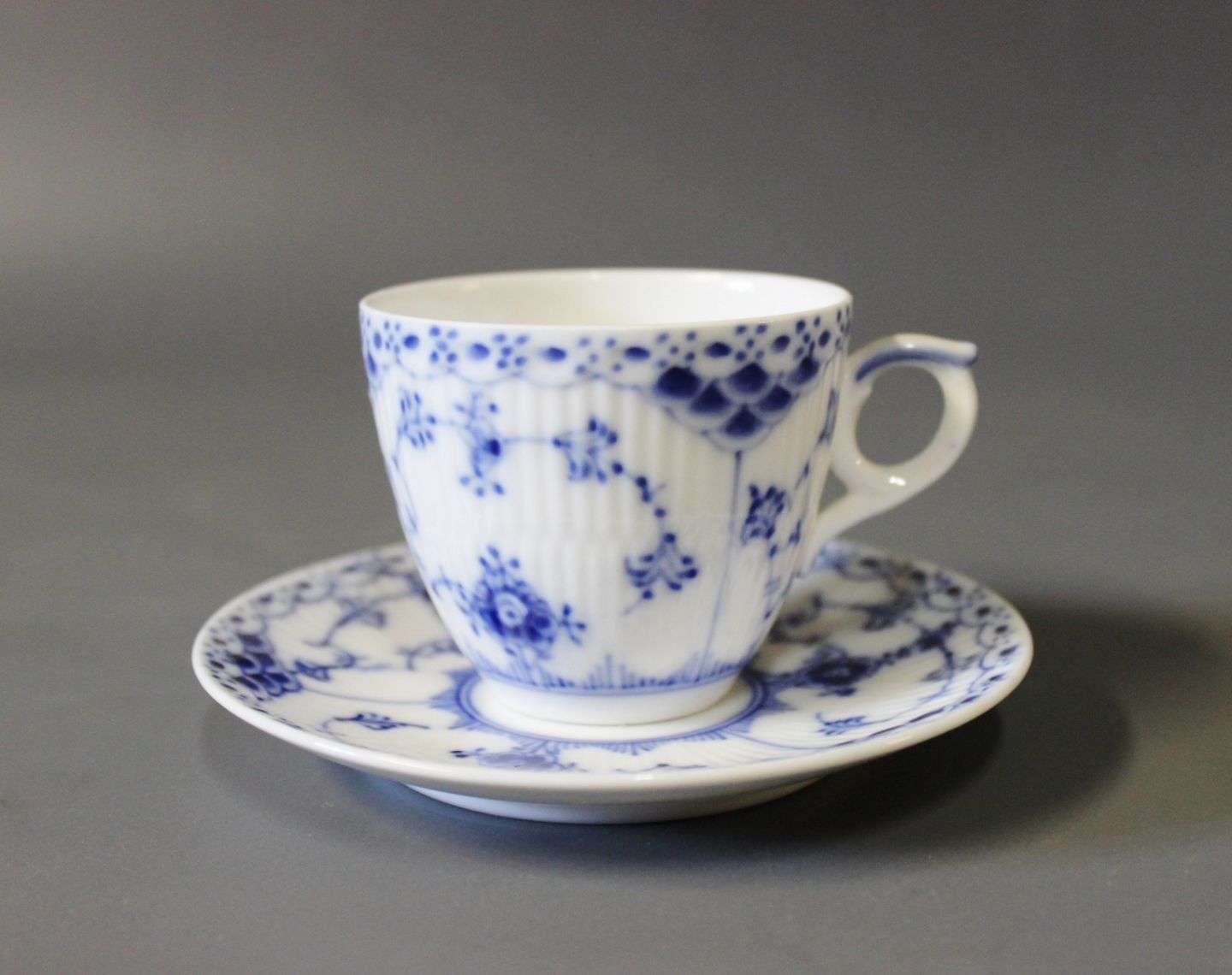 Royal Copenhagen blue fluted half lace espresso cup, no.: 1/528.