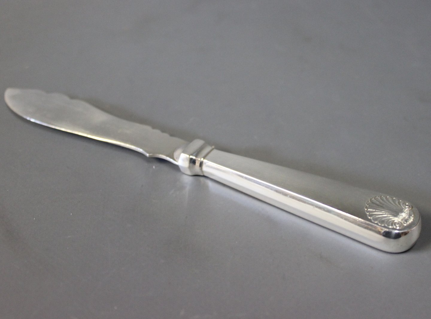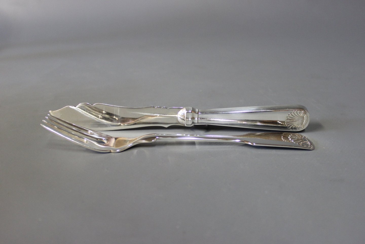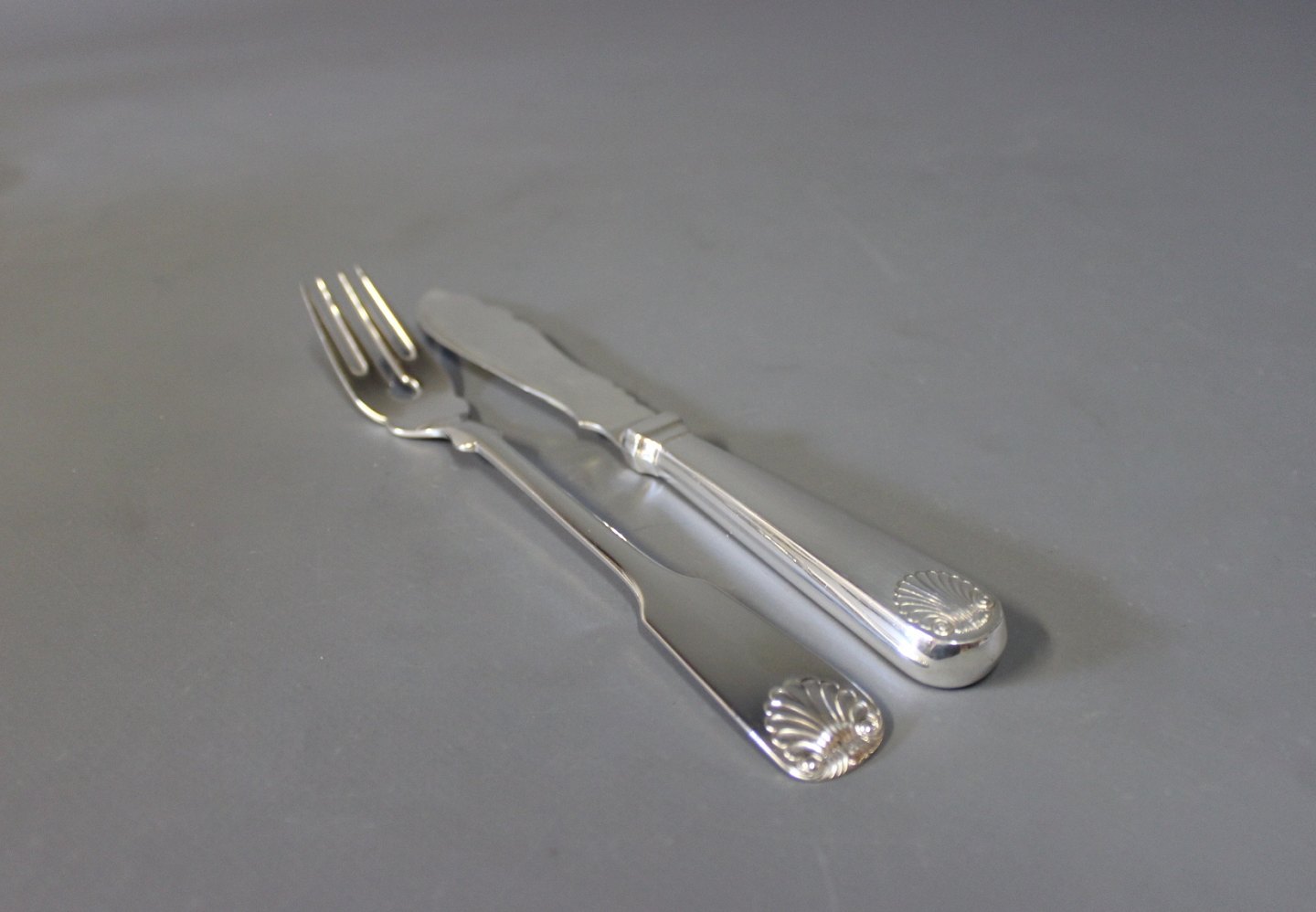 Fish cutlery consisting of a knife and fork in "Shell", hallmarked silver.