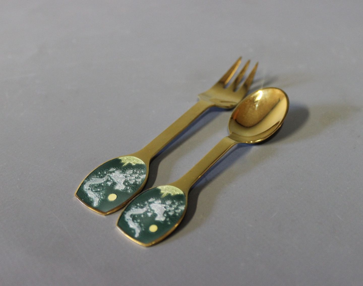 A. Michelsen christmas coffeespoon and cakefork, Snow Queen - 1983 by Lars Bo.