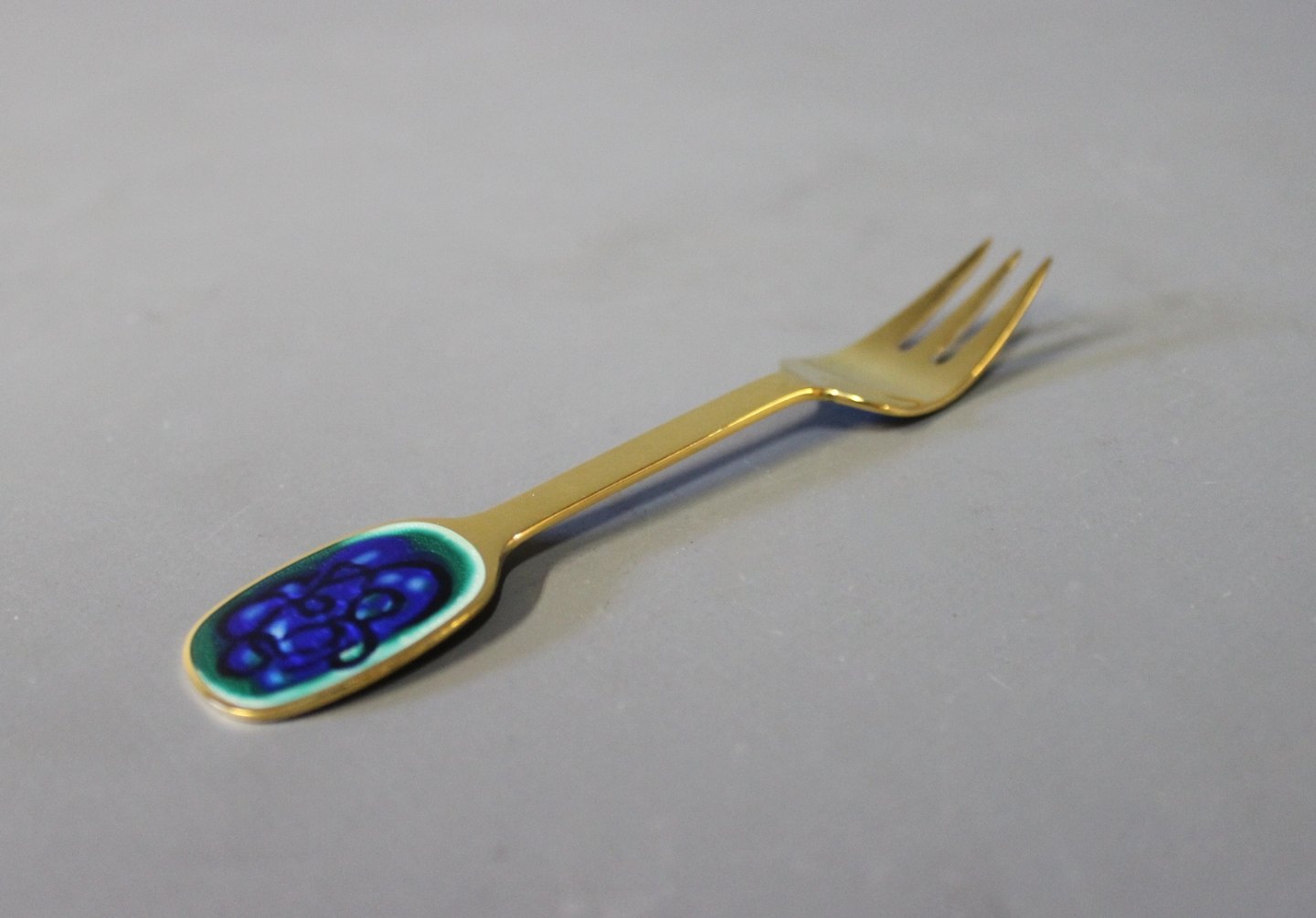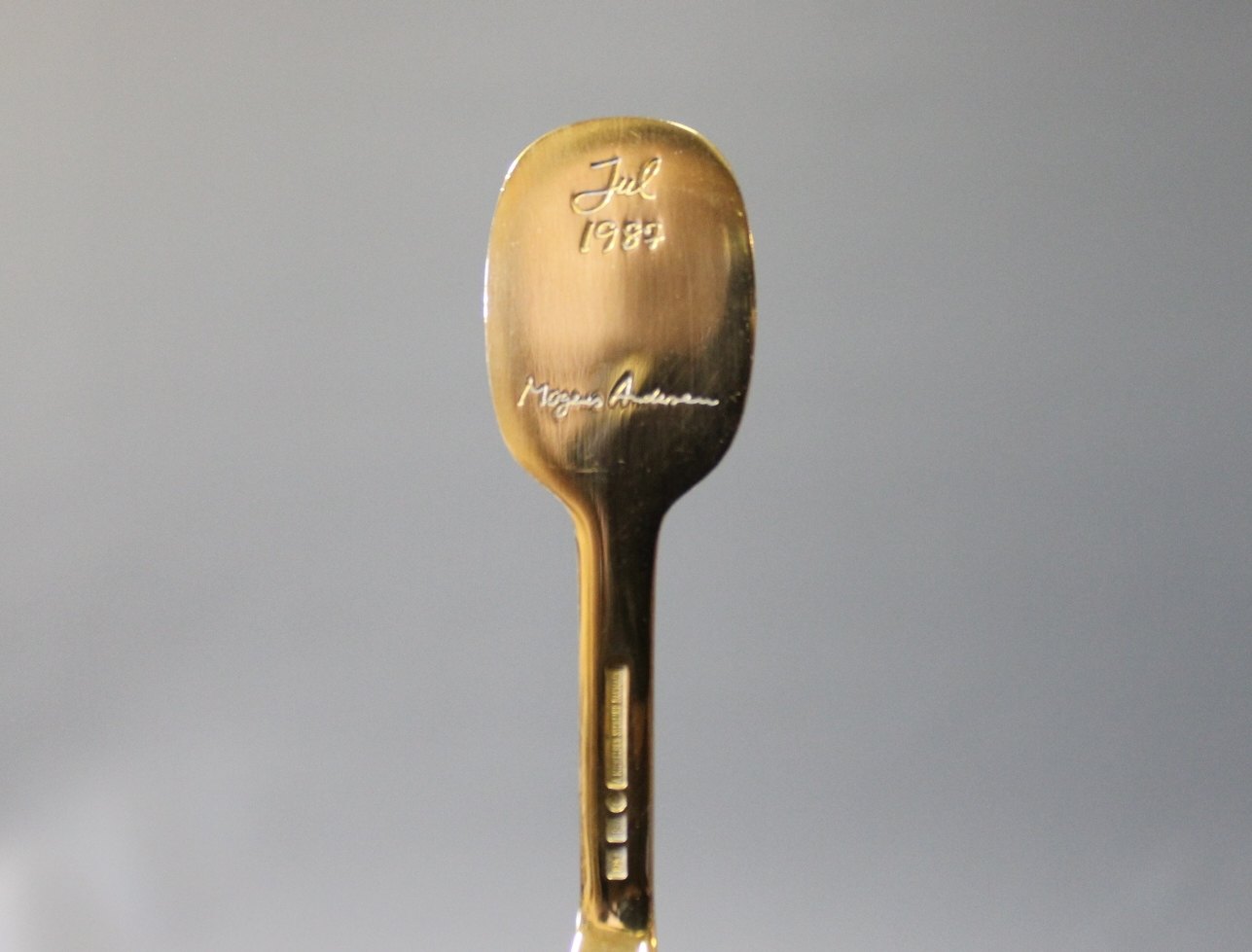 SoldA. Michelsen christmas coffeespoon and cakefork, The Party of Light - 1987 by Mogens Andersen.