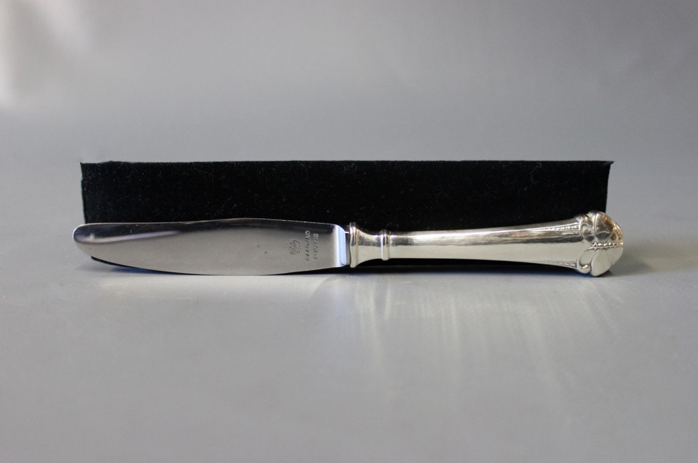 Dinner knife in Butterfly, hallmarked silver. Ask for number in stock.