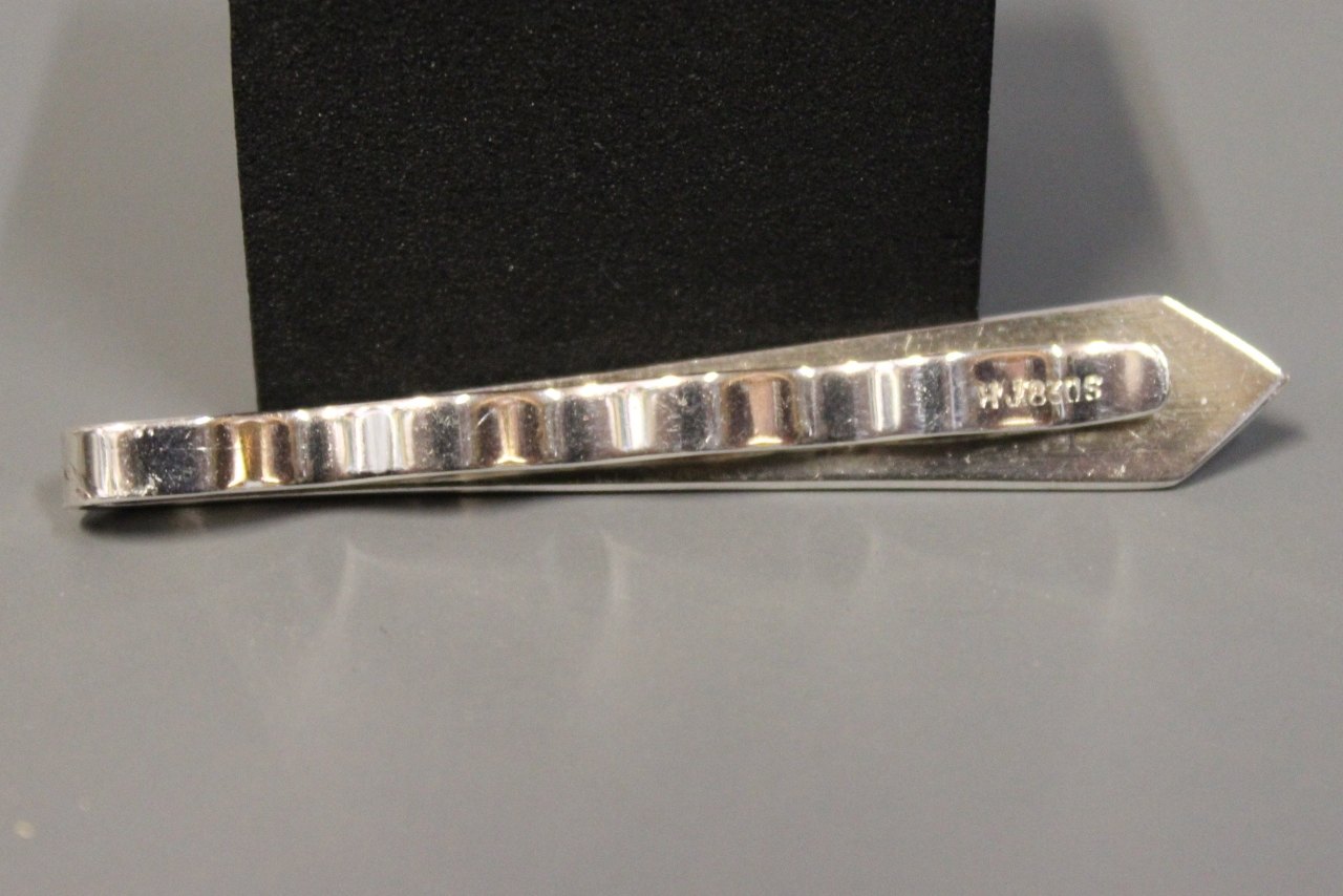 SoldTie clip stamped HJ in 830 silver.
