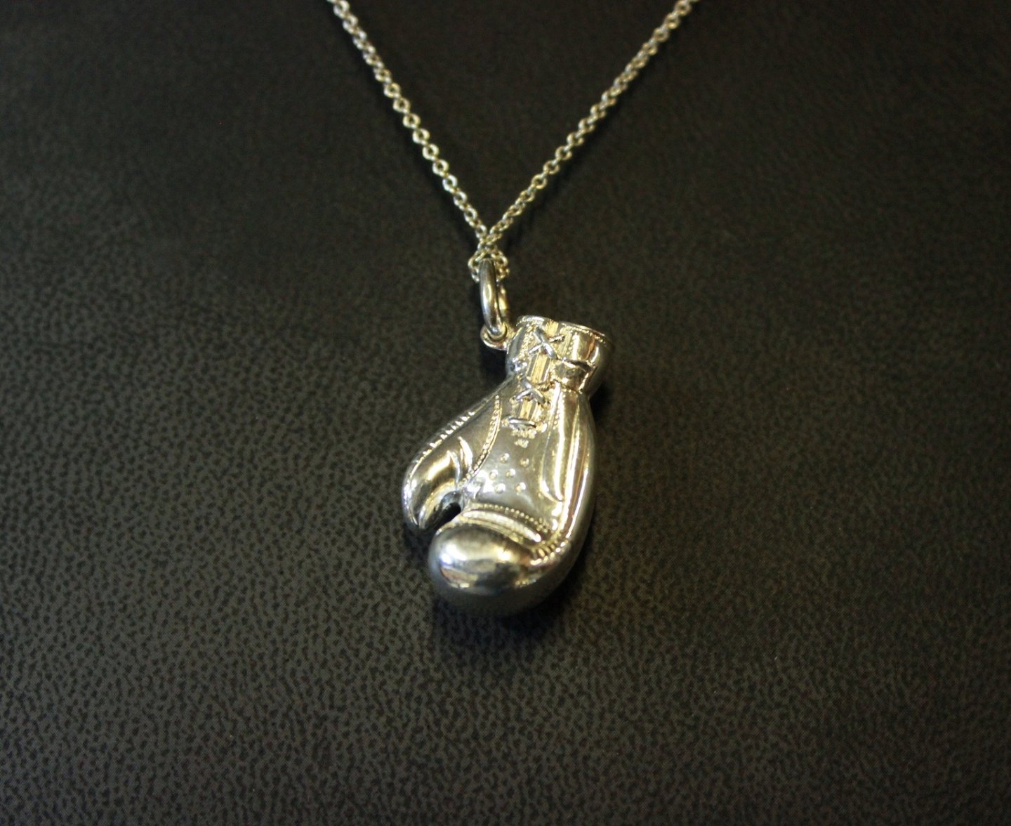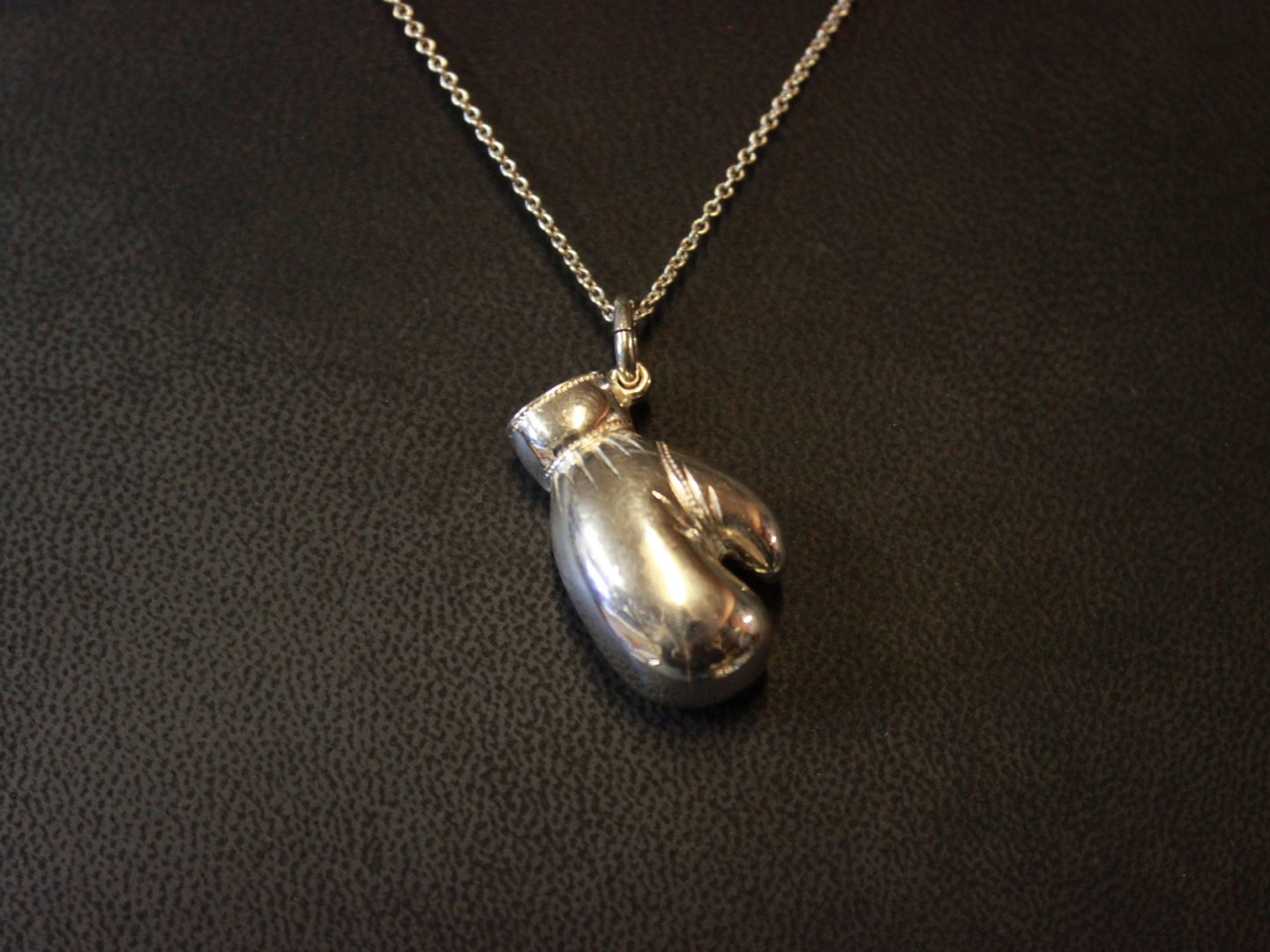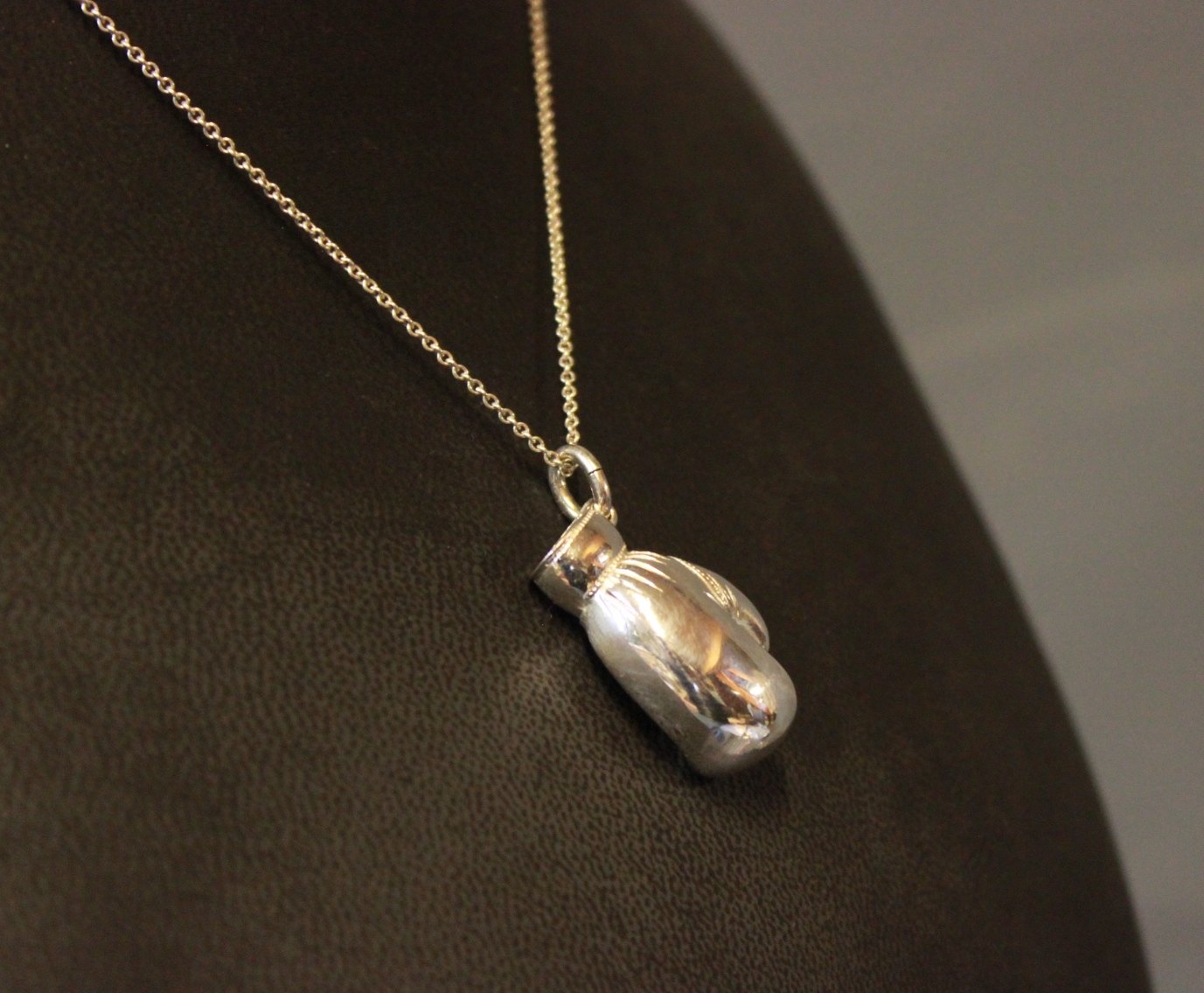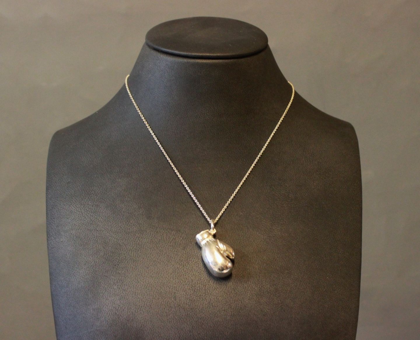 SolgtVedhæng i form af en boksehandske i 830 sølv.