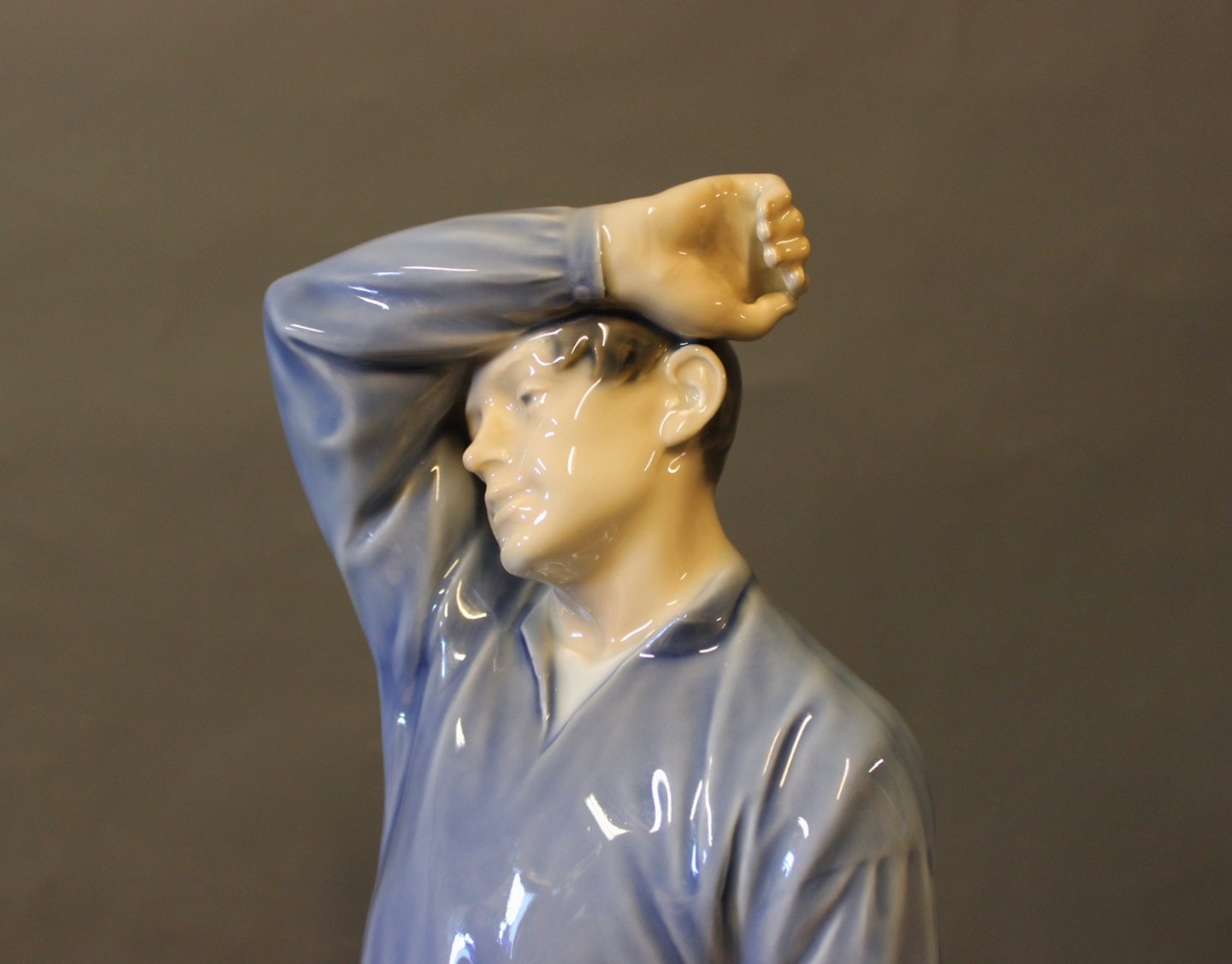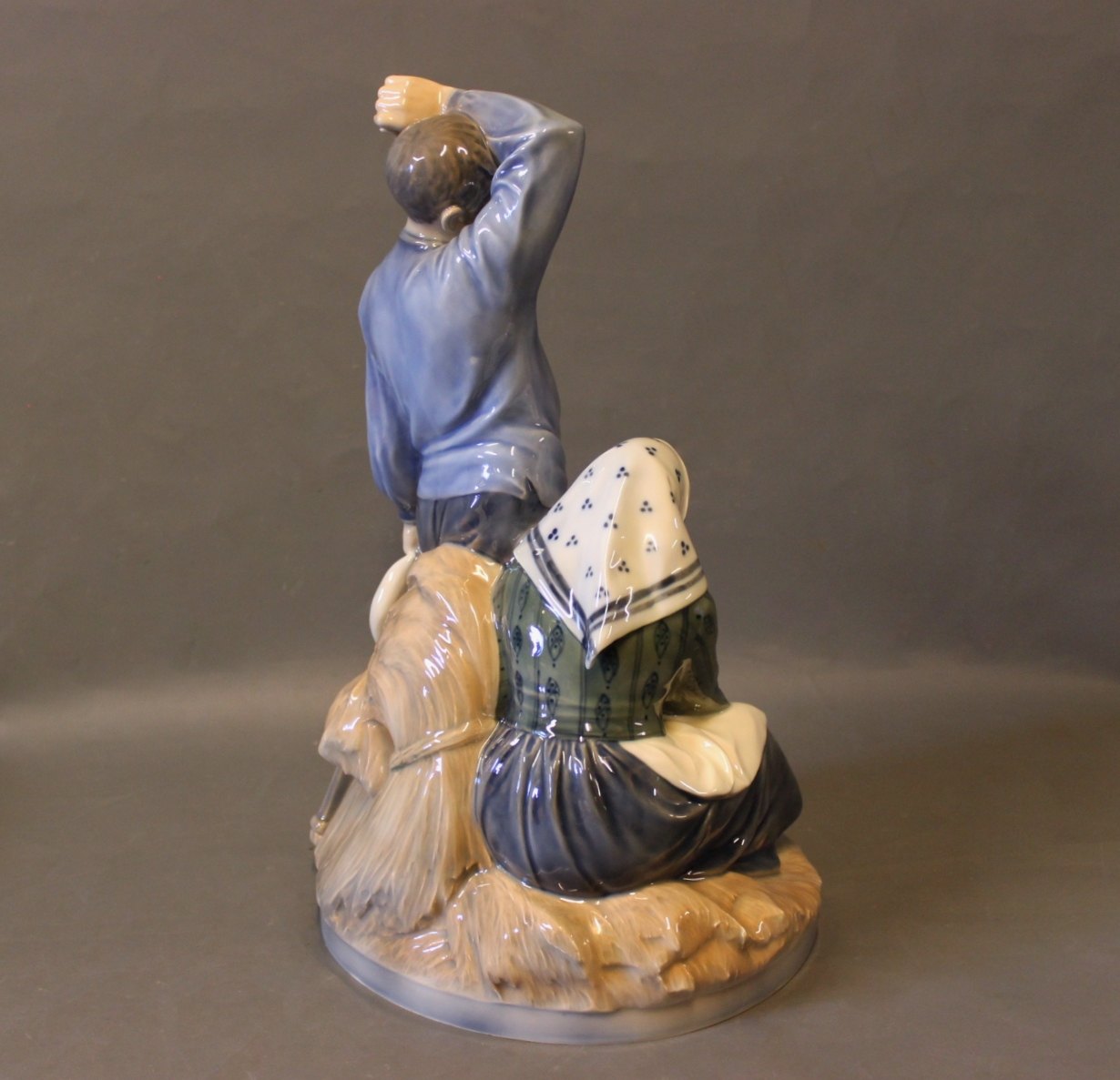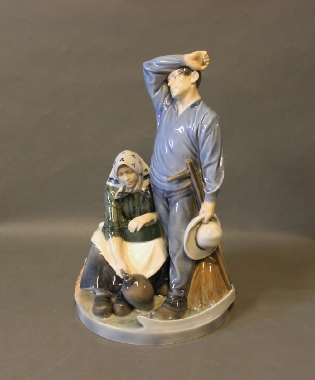 Stor Kgl. porcelænsfigur, mand med le og kone.